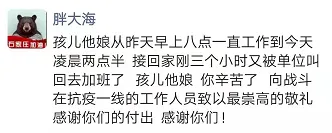 弘石湾小区,孩子做完核酸检测,对省二院的护士阿姨说了句:“谢谢阿姨,辛苦了。”