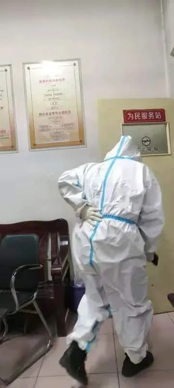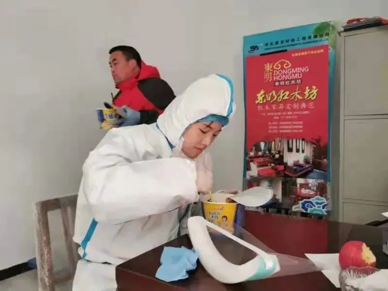 1月5日,通宵检测之后,一大早又开始了新一轮的检测,在替岗医护人员到来之后才稍作停歇吃了一口泡面,怕上厕所,期间没敢喝一口水。