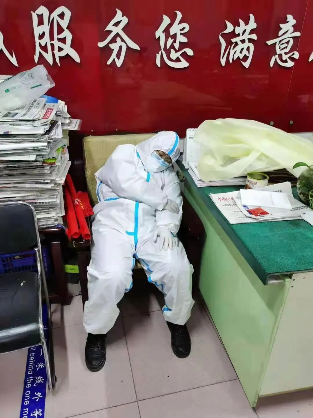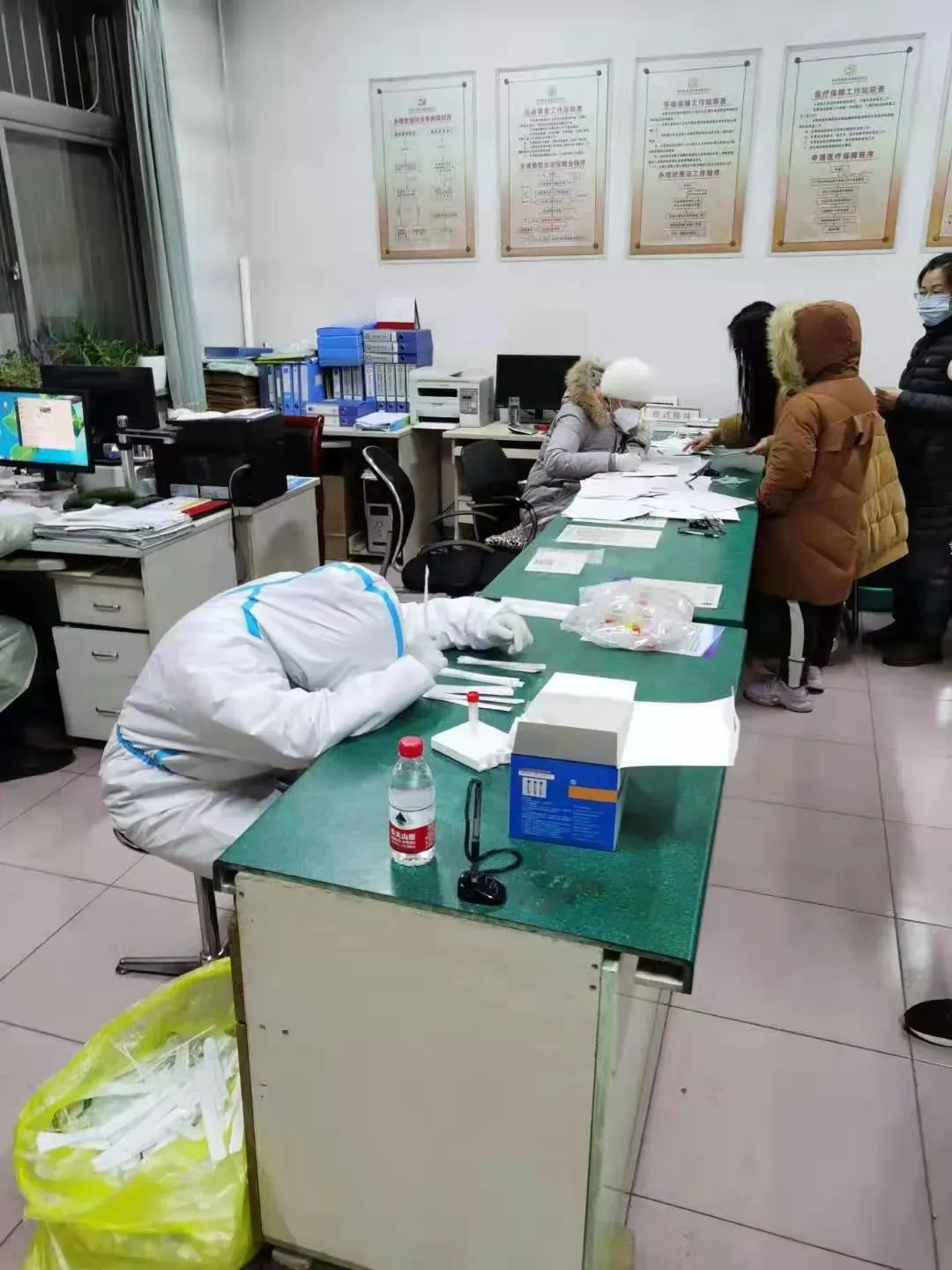 1月6日早上八点到第二天凌晨四点,君苑社区医院医务人员到草场街社区居委会给大家做核酸检测。长时间的连续站立工作,很多医务人员累到腰痛。看到这一幕,许多网友不禁想说,“你太累了,请抽空歇歇吧。”(石家庄君苑社区医院董珍 供图)