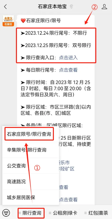 推荐服务:小编将会持续关注各市区县具体限行区域,点击下方名片进入【石家庄本地宝】,在首页菜单栏点击【石家庄限号/限行查询】,即可获取每日限行查询入口,还可以查看各县(市、区)城区限行区域(持续更新)