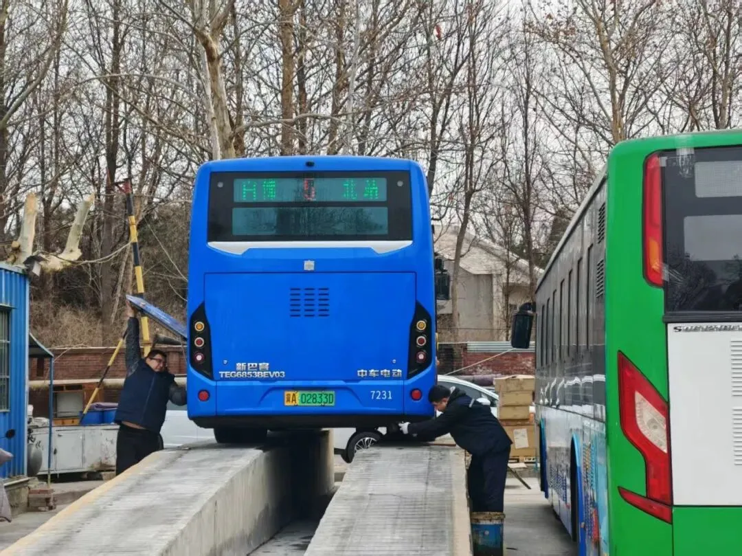 精修细检,筑牢车辆安全根基。车队组织站修人员对143部运营车辆开展“地毯式”排查,重点检修制动、转向、轮胎、灯光电路等关键部件,核查雨刮器、除霜设备保障视线清晰;专项检测防冻液冰点、气路防冻效果,落实每日排污防冻结;建立“一车一档”台账,问题当日整改,杜绝“带病”车上路。驾驶员提前30分钟到岗预热,确保暖风正常运转,让市民上车即享暖意。
