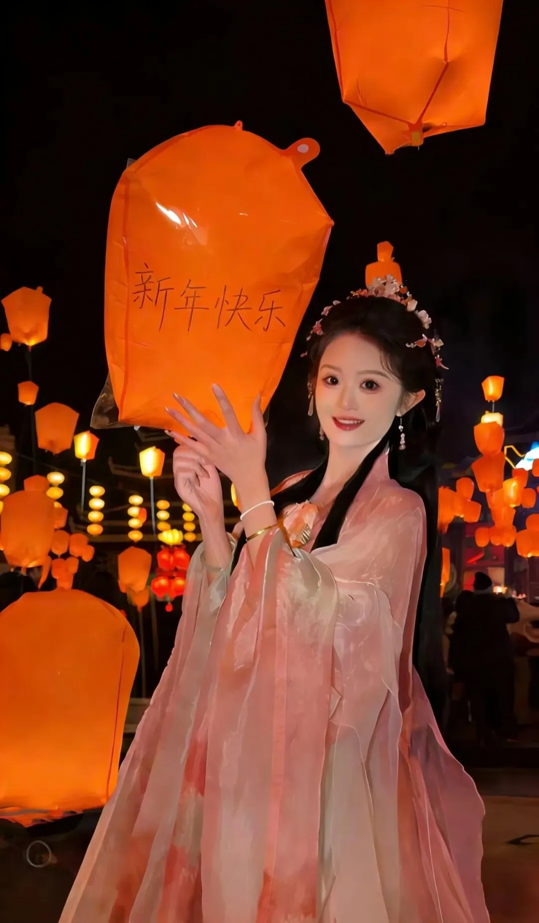 数千盏孔明灯同时升空,夜空被染成橙黄,