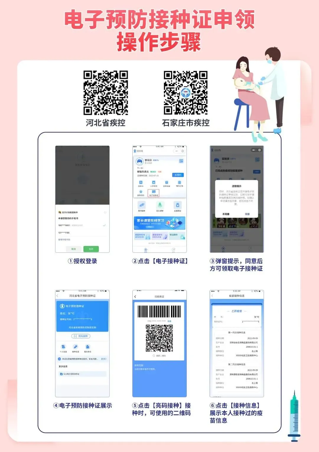 石家庄市疾控中心对外发布信息称,石家庄市电子预防接种证正式上线,让您轻松将接种记录存入手机,随时查询。