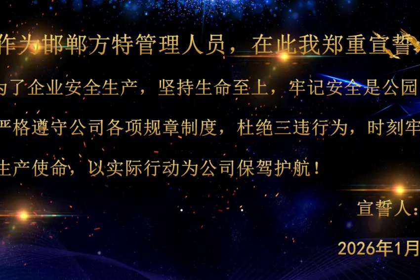 在企业发展的过程中,安全生产始终是重中之重。为深入贯彻“人民至上、生命至上”的安全理念,邯郸方特以“沉浸式警示、契约化担责、庄严化宣誓”为抓手,通过观看安全警示视频、签订“两状一书”、安全生产宣誓三大关键环节,构建起“意识-责任-行动”三位一体的安全管理体系,为新一年安全运营筑牢根基。