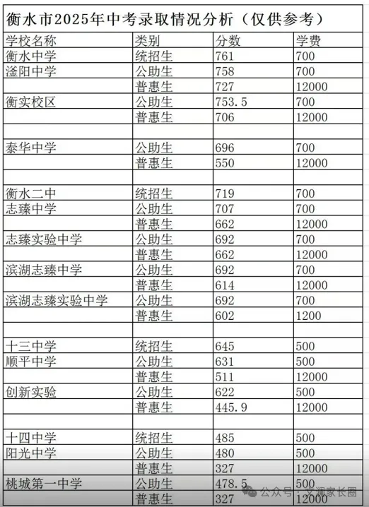 - 衡水中学实验学校:公助生分数线753.5分,普惠生分数线706分。