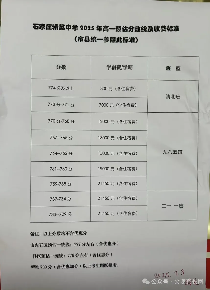 - 泰华中学(原衡水一中):公助生分数线696分,普惠生分数线550分。