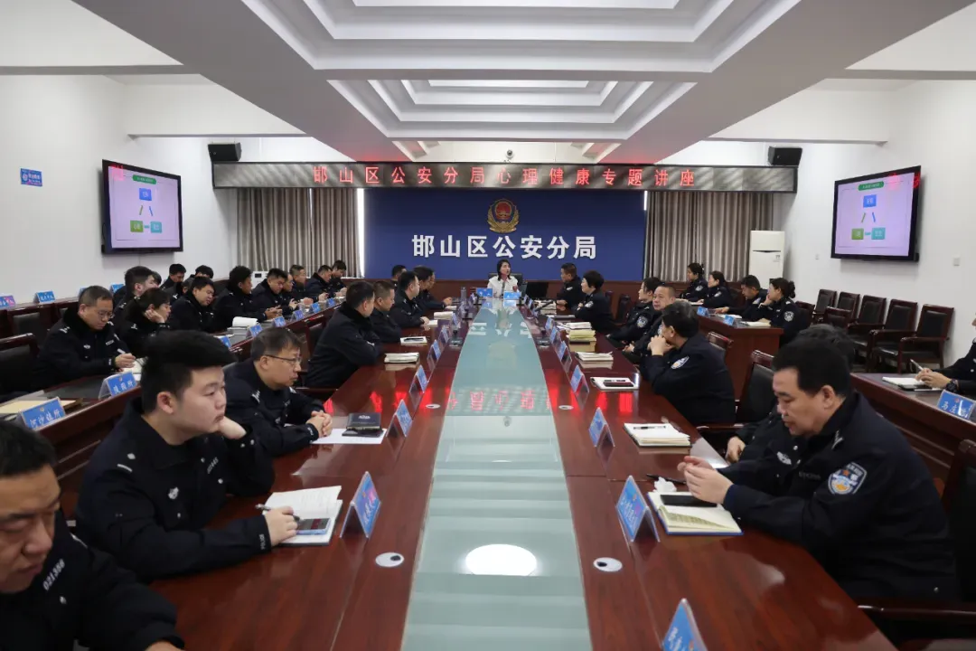 在第6个中国人民警察节来临之际,为切实关心关爱民辅警身心健康,缓解一线工作压力,提升心理调适能力,1月9日上午,邯山区公安分局精心组织,开展以“做一个幸福的人”为主题的心理健康专题讲座。分局特邀磐林心理创始人、意大利留学心理学博士王狄老师到场授课,分局局领导和各科室所队指导(教导)员在主会场参加,各派出所、刑警中队民辅警通过电视电话会议形式在分会场参加。