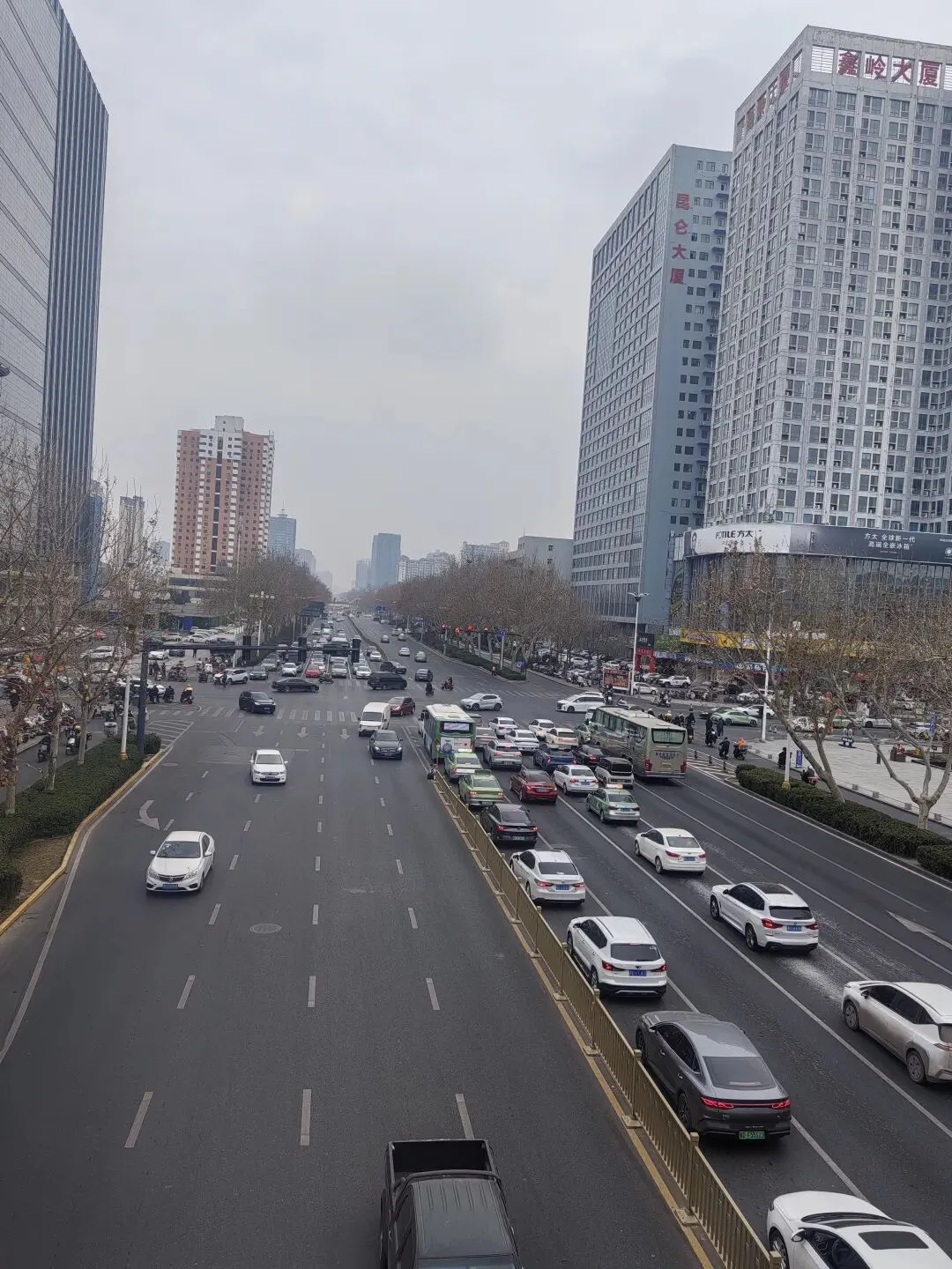 从小店出来一直往西走,到了过街天桥,这是我见过最豪华的过街天桥了,站上电梯,走上大红色的天桥,俯瞰桥下过往车辆和邯郸道。