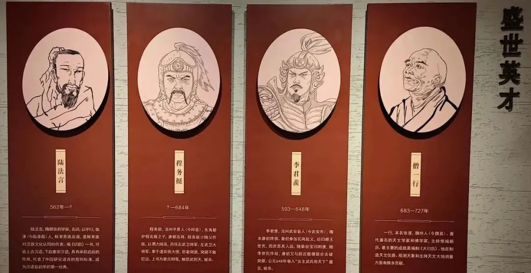 隋唐时期,邯郸英才辈出,隋代音韵学家陆法言、唐代名将程务挺、唐代名将李君羡、唐代著名的天文学家、佛学家僧一行分别是邯郸临漳、洺州、武安和魏州人。但资料显示一行和尚的出生地普遍认为是唐代邢州的巨鹿(今邢台巨鹿县)。