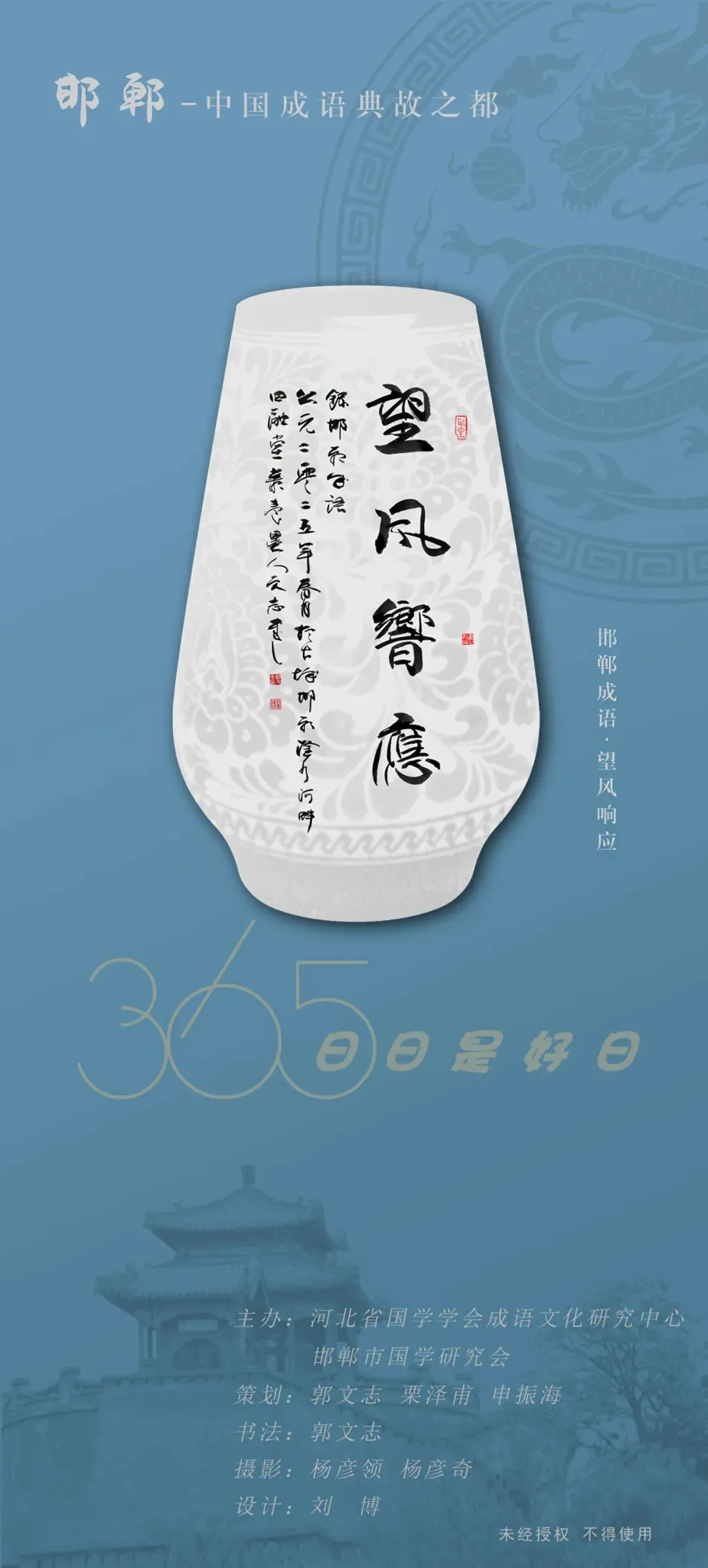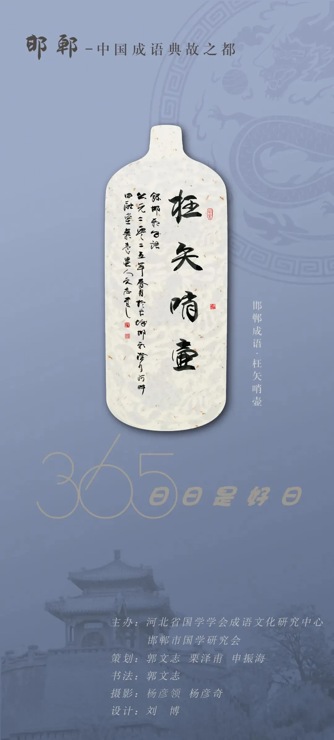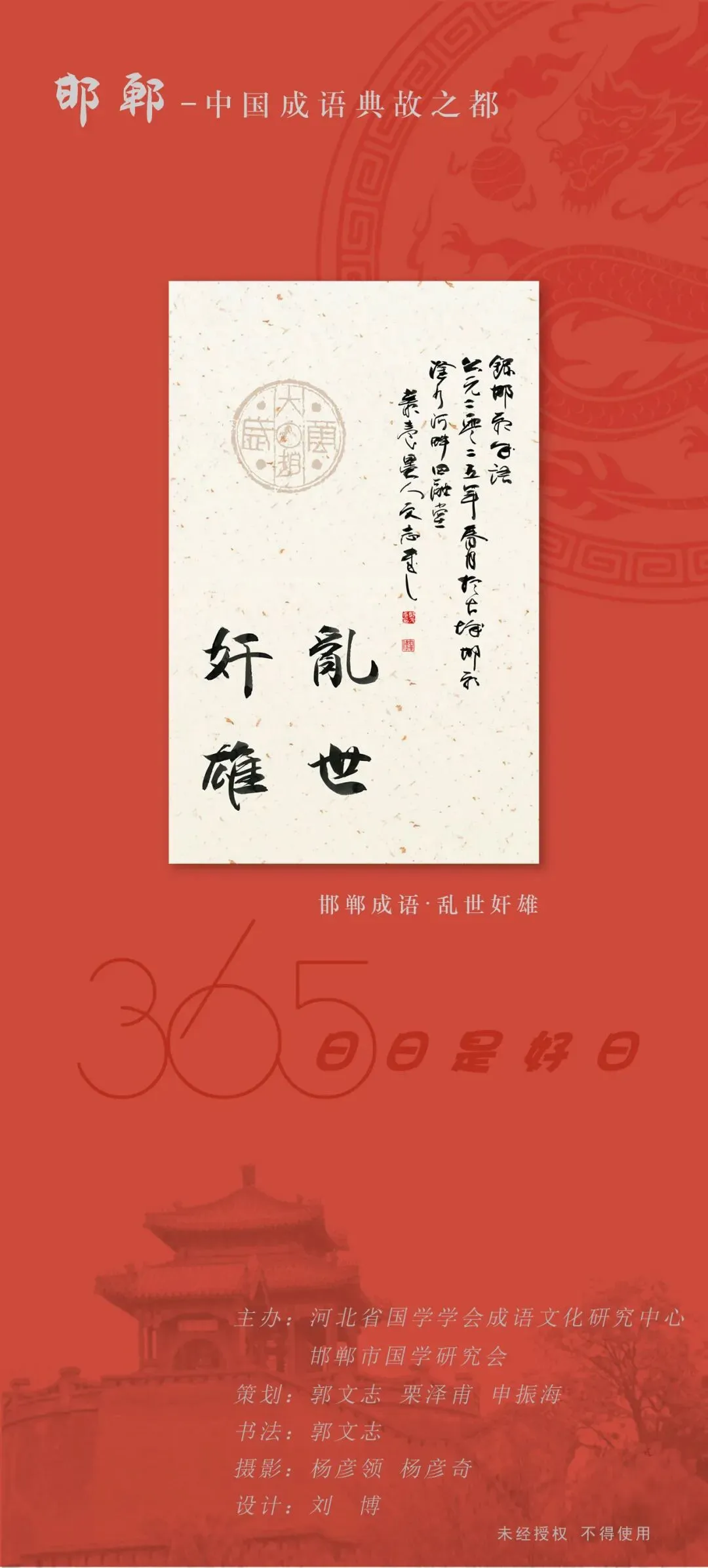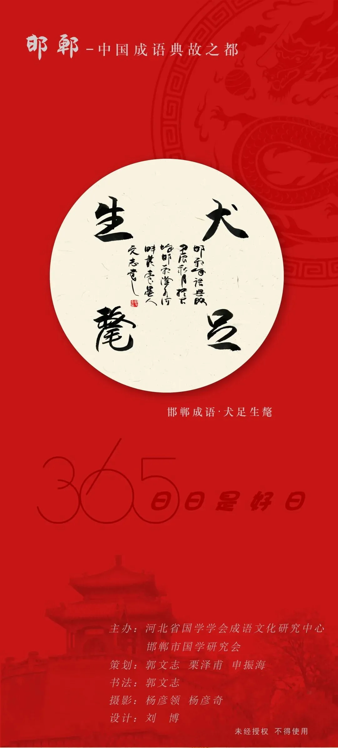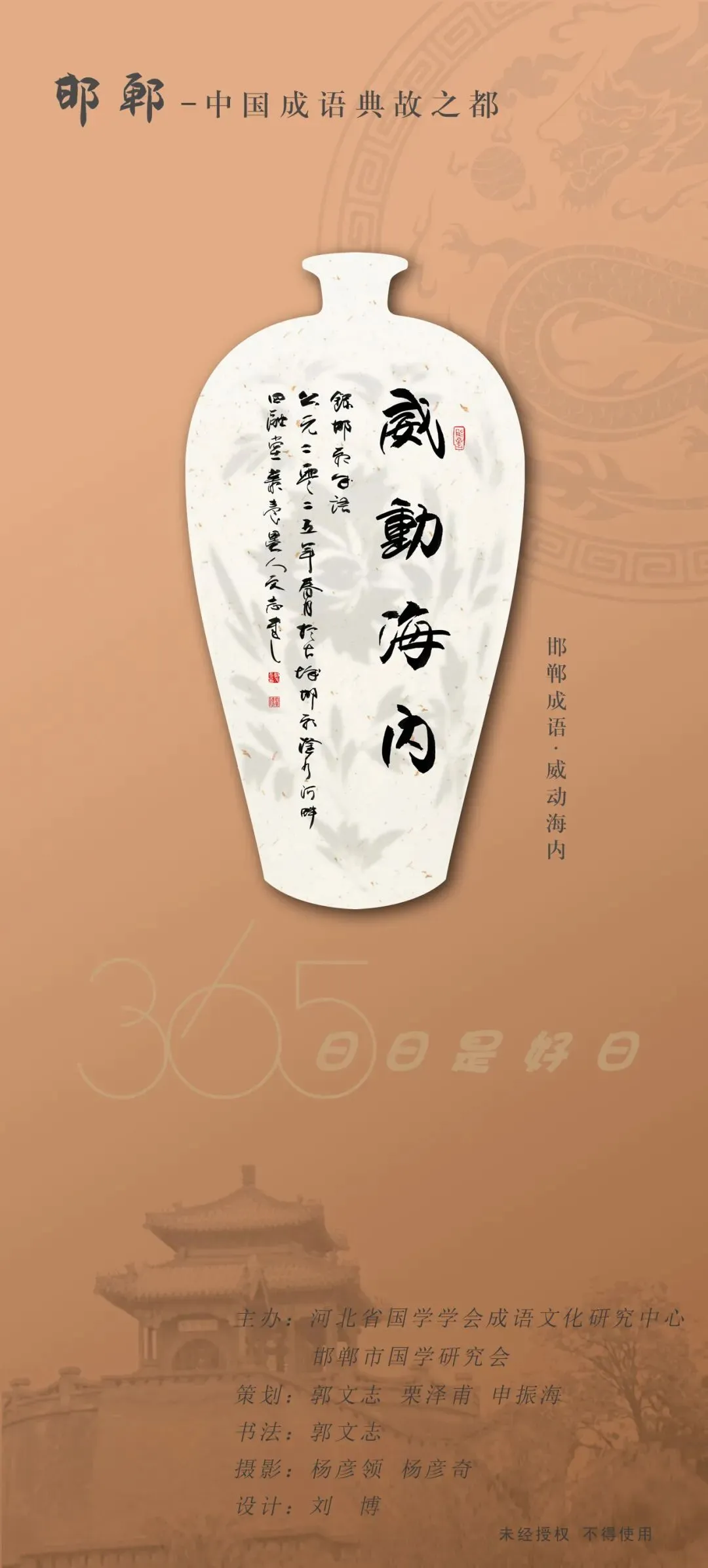 为打造独特的“邯郸——中国成语典故之都”城市文化品牌,营造浓郁的“邯郸——中国成语典故之都”文化氛围,河北省国学学会成语文化研究中心与邯郸市国学研究会,经过一年多的筹备,隆重推出“邯郸成语典故365”书法卡片。