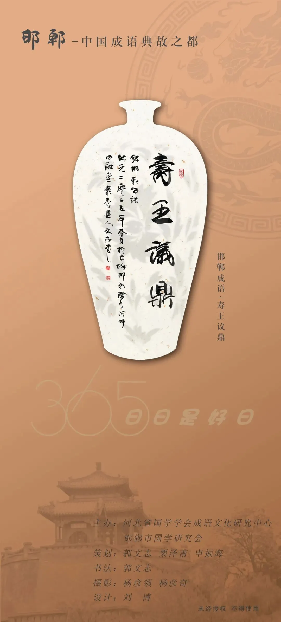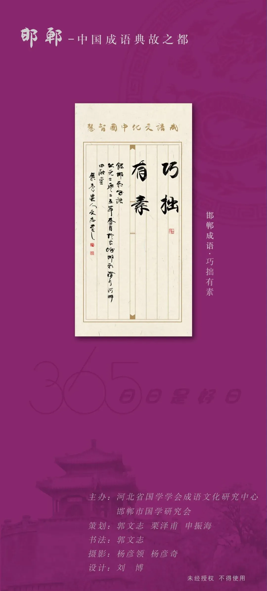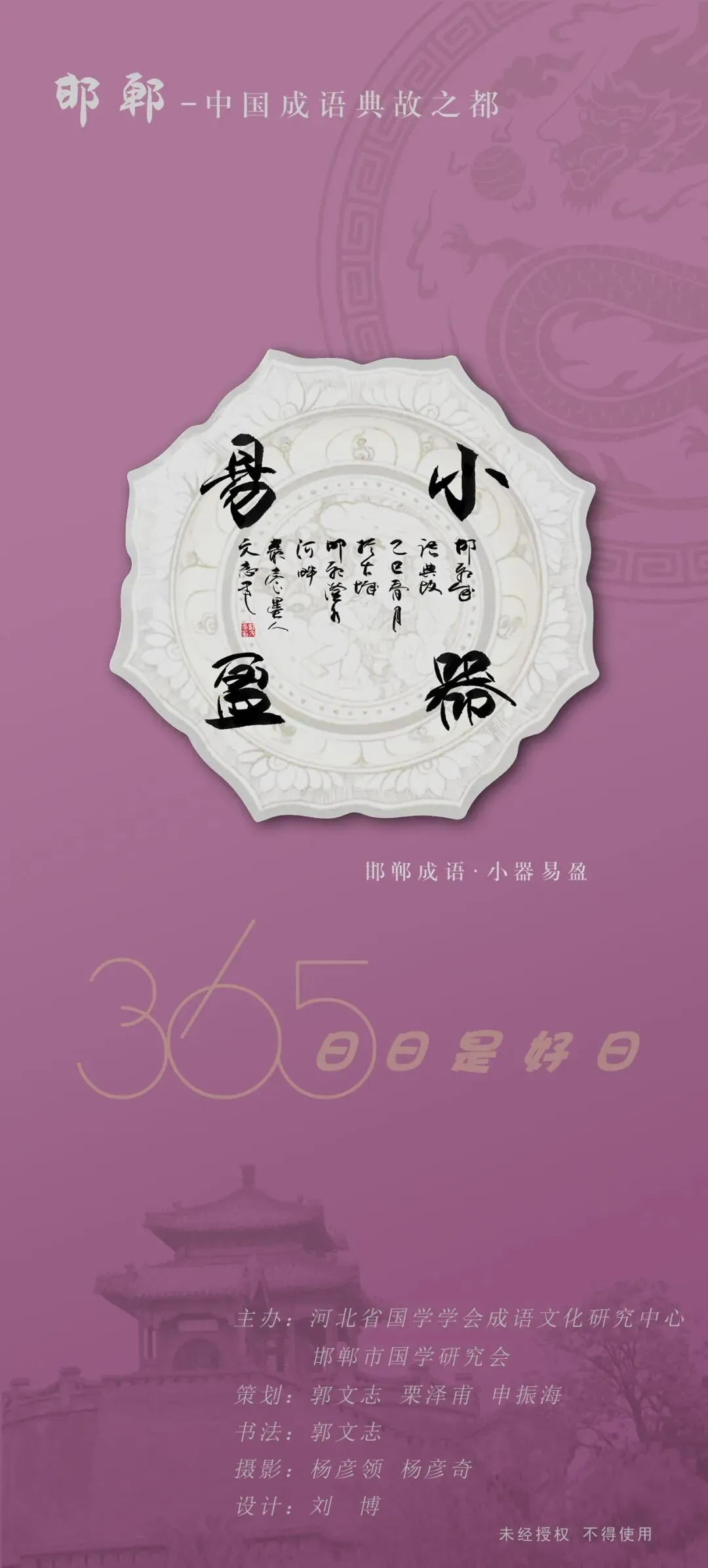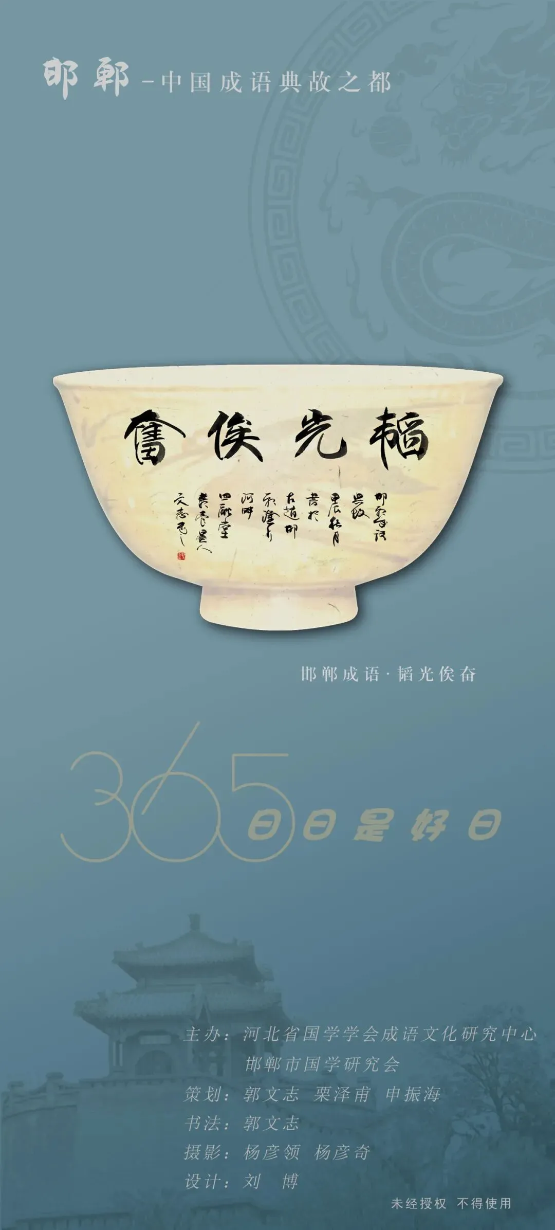 为打造独特的“邯郸——中国成语典故之都”城市文化品牌,营造浓郁的“邯郸——中国成语典故之都”文化氛围,河北省国学学会成语文化研究中心与邯郸市国学研究会,经过一年多的筹备,隆重推出“邯郸成语典故365”书法卡片。