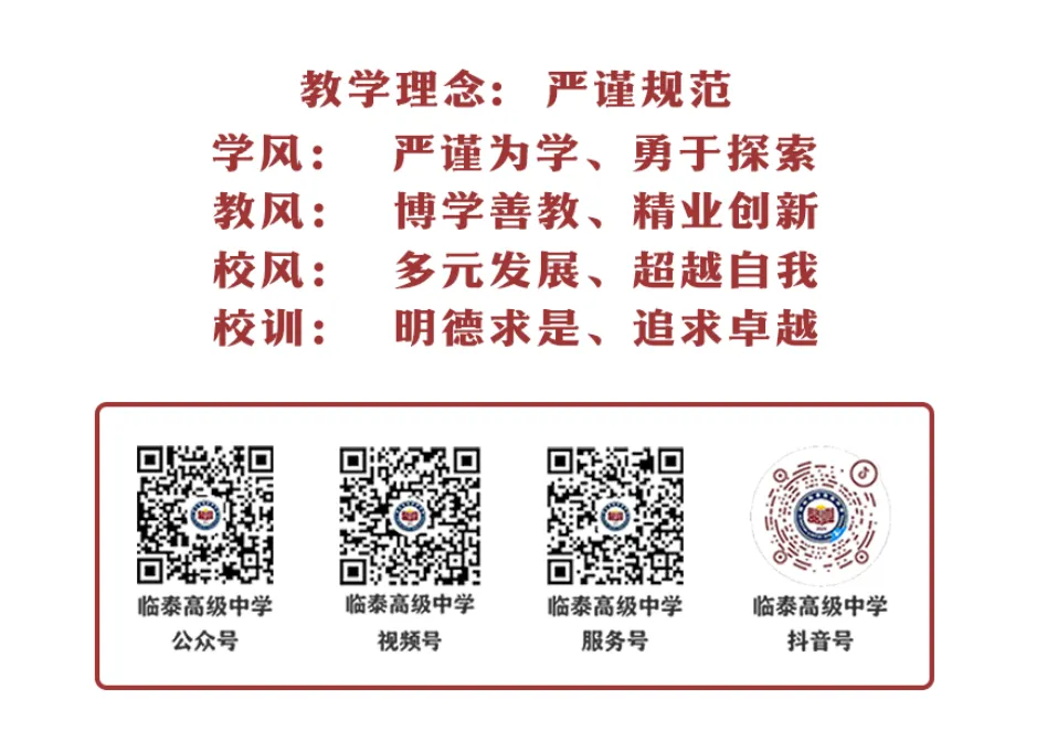 邢台临泰高级中学,秉承衡水泰华教育优秀的办学理念,全面引进衡水泰华教育"人文化"的激情教育、“人本化”的高效课堂和“人性化”的精细管理,按照”五一致一共享”的原则,即管理体制一致、教育理念一致、教学安排一致、课堂模式一致、作业考试一致、教育教学资源共享,实现衡水优质教育资源全覆盖,让学生在家门口就能享受到衡水教育模式的优质服务。