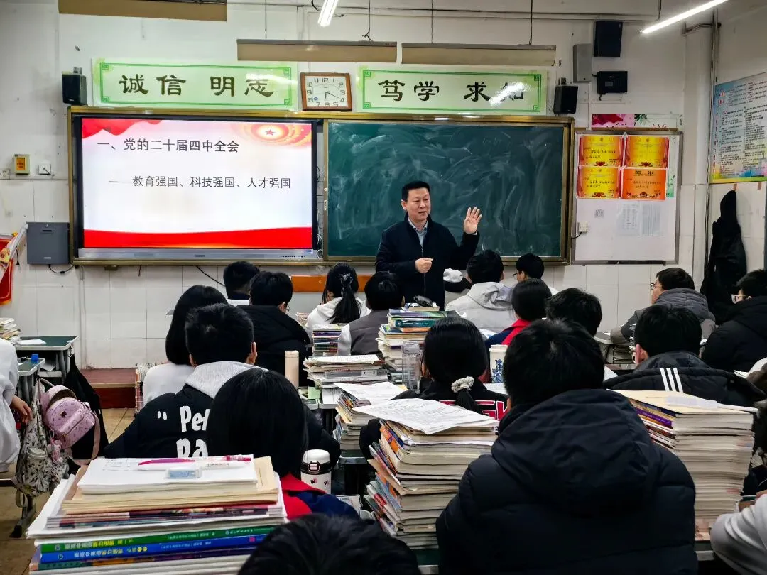本次校级领导讲授思政课活动,是四中党委引领学子深入学习党的二十届四中全会精神的生动实践,是全体师生凝聚思想共识、接受深刻洗礼的重要契机。更是新时代青年砥砺报国之志的嘹亮号角。今后,我校将继续坚守为党育人、为国育才的初心使命,让红色基因代代相传,让爱国主义旗帜始终在校园高高飘扬,让四中这片教育沃土,持续孕育出以实现中华民族伟大复兴为己任的先锋力量!