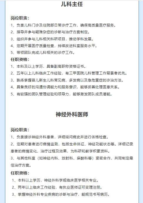 石家庄医学高等专科学校附属医院招聘儿科主任、神经外科医师、普外科医师、儿科护士