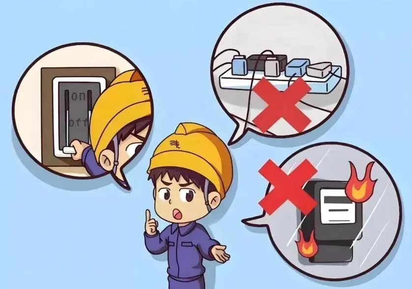 1.大功率电器设备最好不要同时启动,否则瞬间电流过大,容易引起火灾。