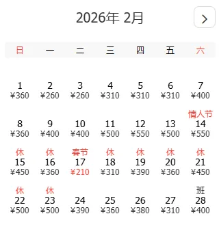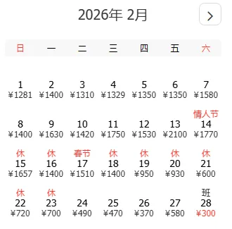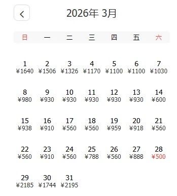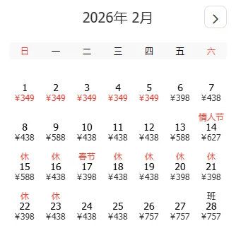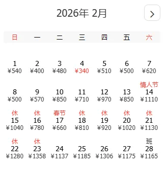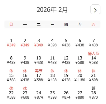 去程和返程最低价不一定按照时间顺序排列,大家根据自己的出游计划选择合适的时间