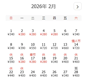 🎫返程最低价:280/340/400元