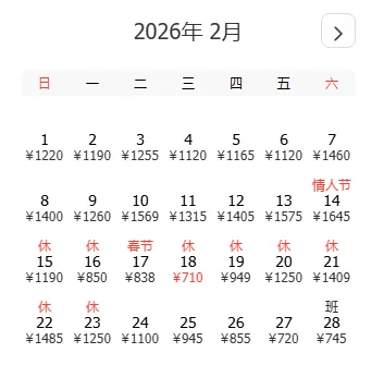 🎫返程最低价:710元