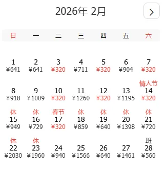 🎫返程最低价:320/560元