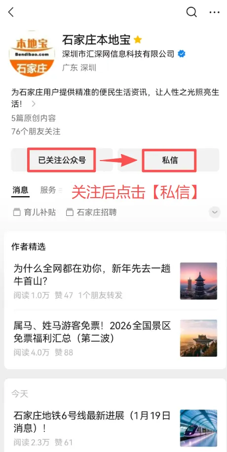 点击【石家庄本地宝】图标可直接关注我们哦