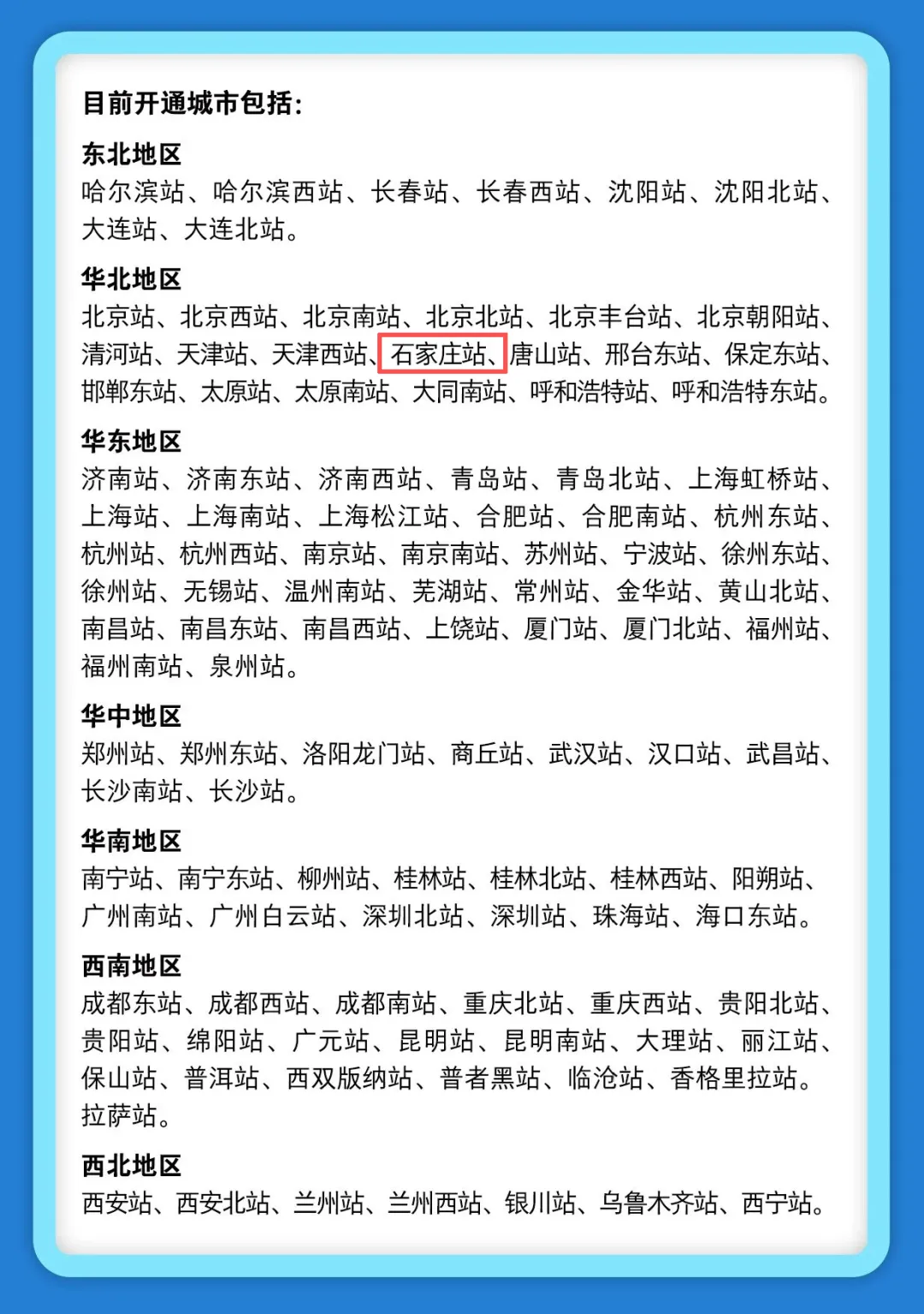 新增石家庄站等92个车站