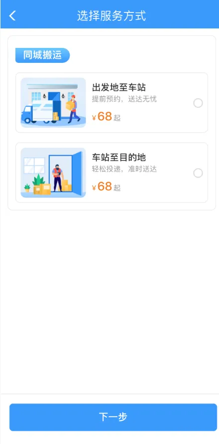 价格为“出发地至车站”和“车站至目的地”68元/件,“出发地至所乘列车站台”和“所乘列车站台至目的地”98元/件。