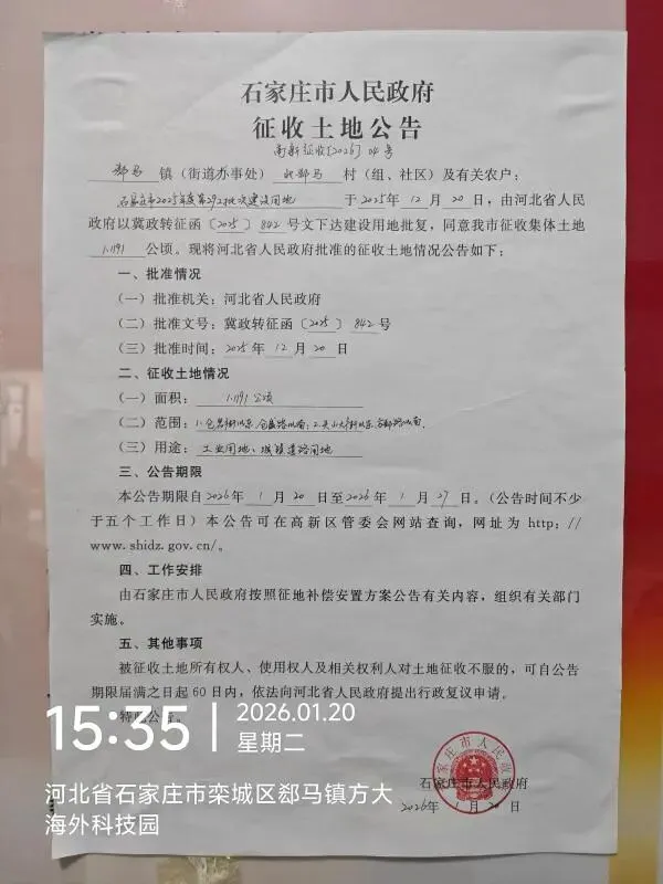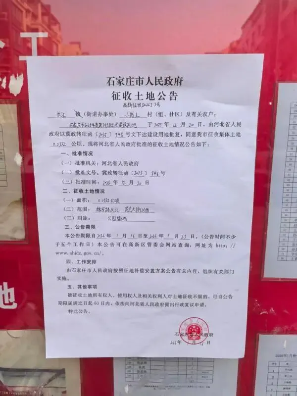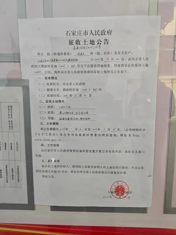 >石家庄市人民政府征收土地公告 高新征收[2026]2-6号