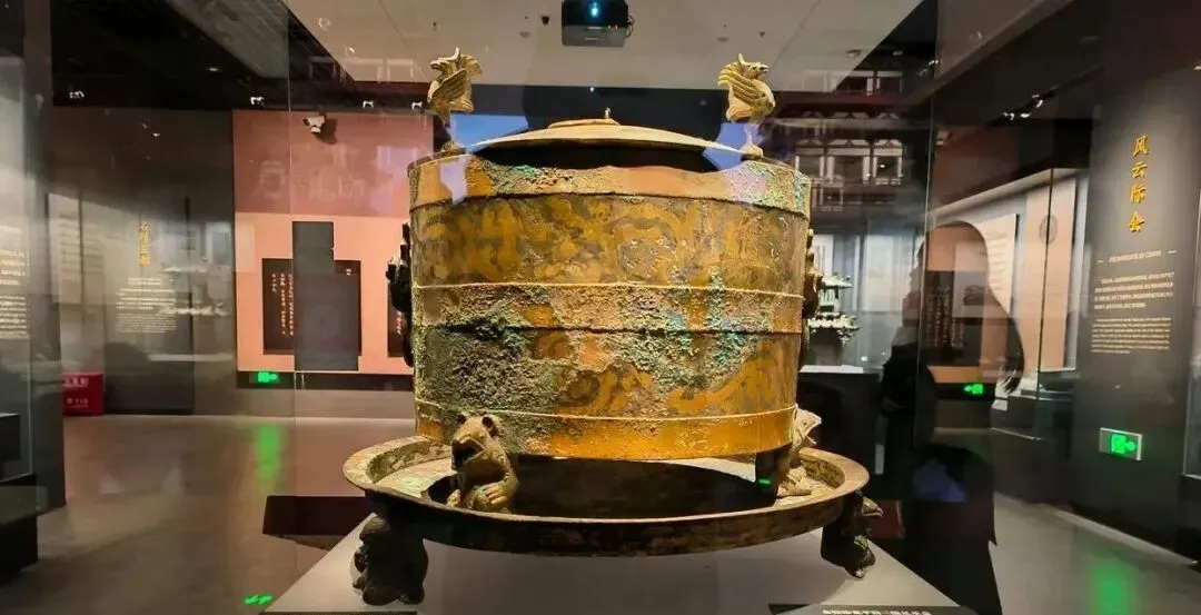邯郸博物馆的镇馆之宝东汉金银涂乘舆大爵酒樽及承盘为顶级珍品,它与故宫博物院藏品同源,通体鎏银鎏金,三朱雀展翅、三熊托樽,汉代官造"蜀郡西工"杰作,全国仅存2件。