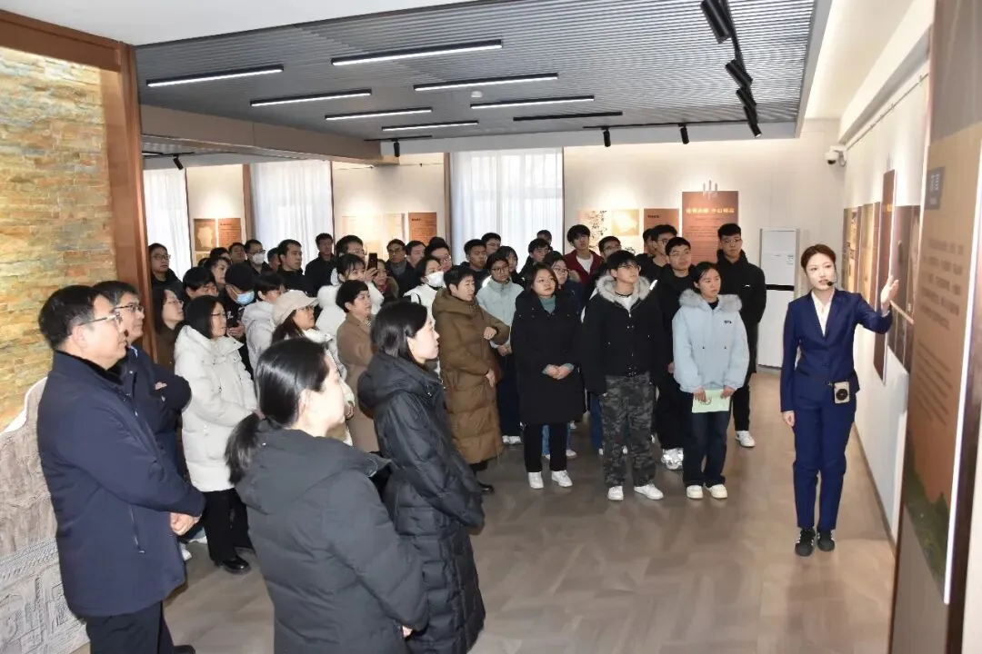 仪式结束后,与会领导、嘉宾与师生代表一同走进展区参观。展厅内,承载着石家庄悠久历史的文物与图文静静陈列,无声诉说着这片土地的厚重与荣光。师生们或凝神细听讲解,或驻足端详展品,或轻声交流感悟,在历史的长廊中感悟一脉相承的精神力量。