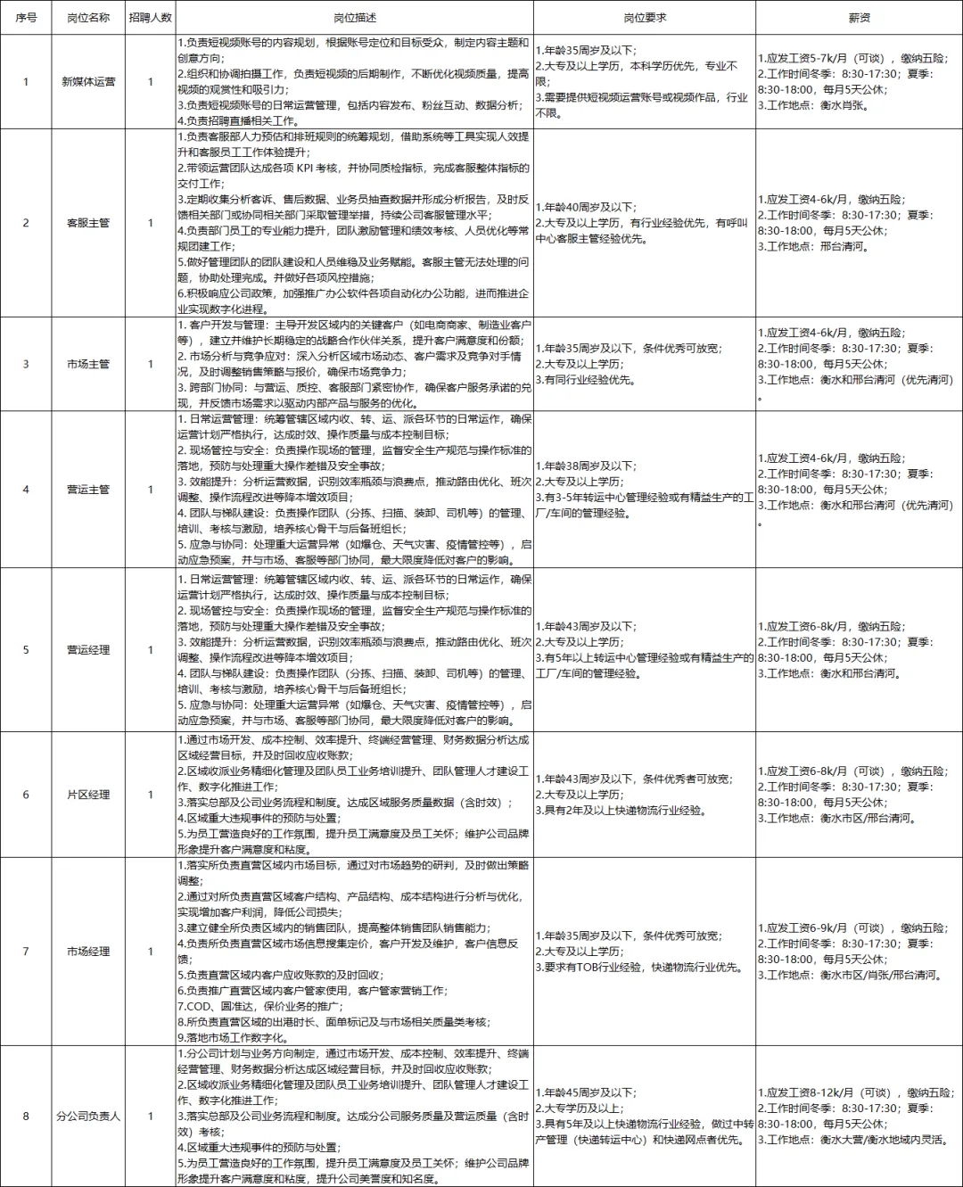 岗位要求:不限、27-43岁、大专及以上