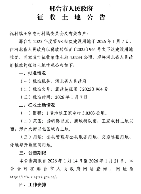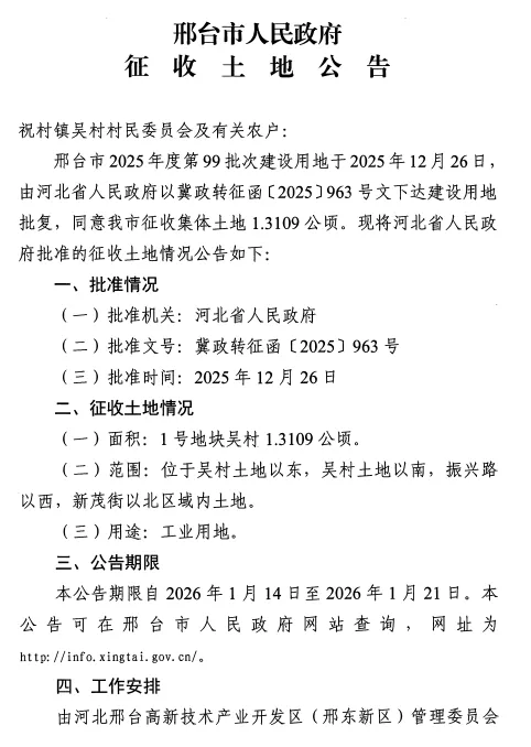 扬帆路以东,新城街以南,王家屯村土地以西,邢州大街以北区域内土地。