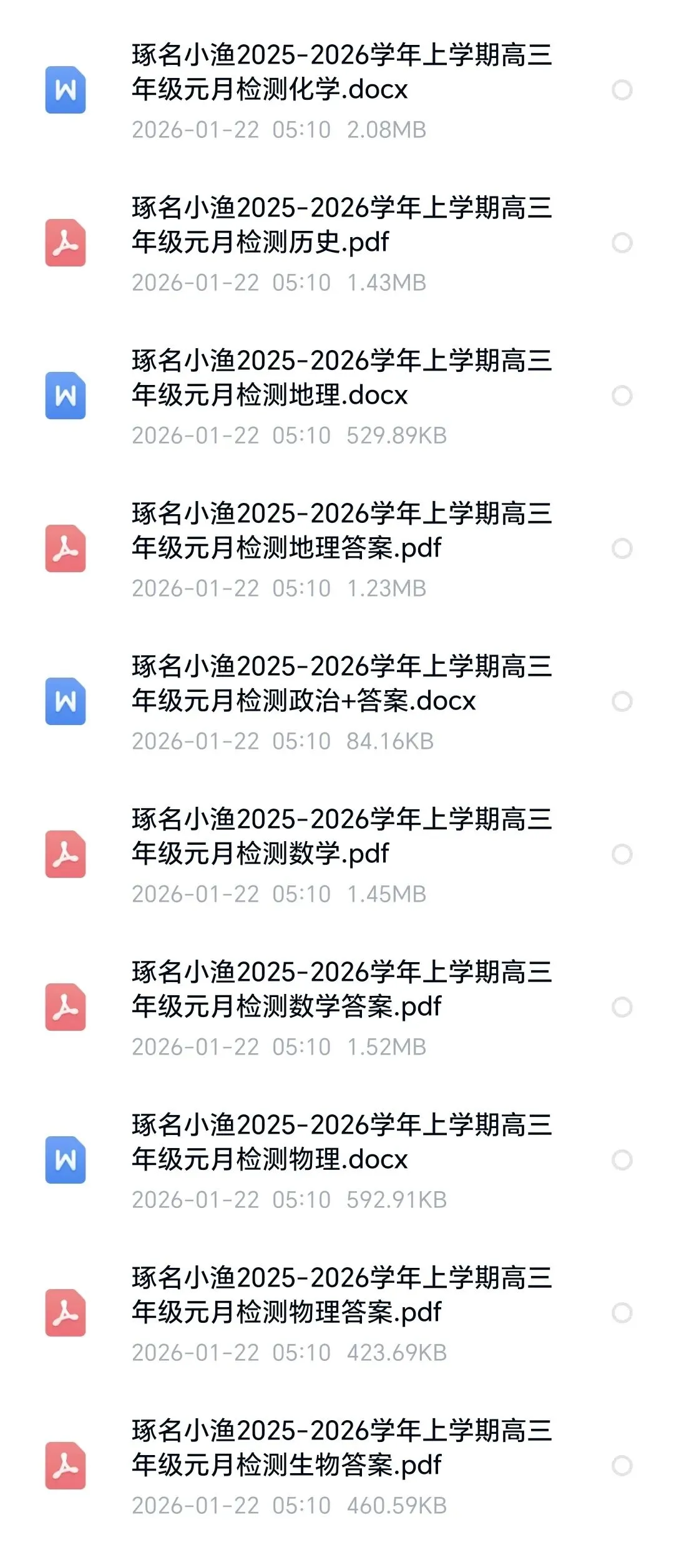 >河北省邢台市琢名小渔2025-2026学年高三1月检测全科