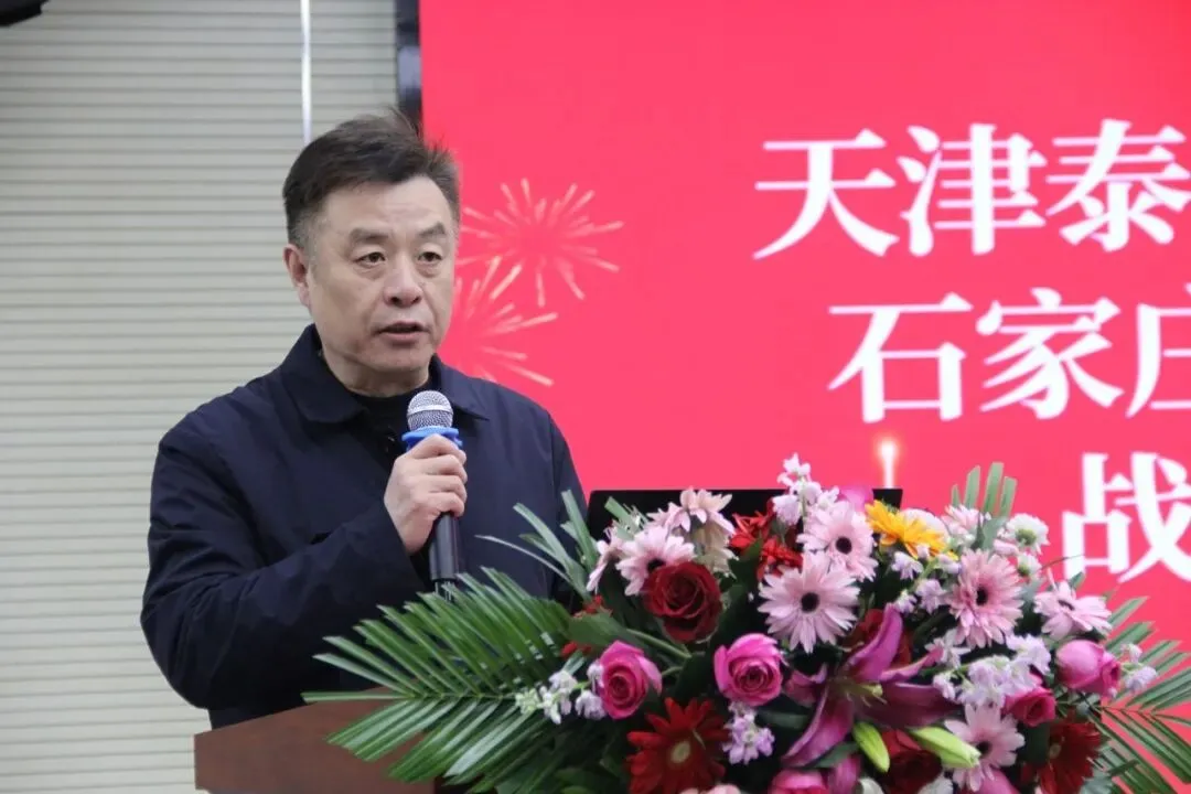 施文国副主任首先致辞,他代表石家庄市卫生健康委员会,对本次两地合作的成功启动表示热烈的祝贺。他表示,此次天津泰达国际心血管病医院与石家庄长城心血管病医院开启战略合作,是贯彻落实京津冀协同发展战略、推动优质医疗资源跨区域共享的务实举措。他指出,长城医院深耕中西医结合心血管专科领域,逐步成长为我市民营医疗领域的特色机构。期待以此次合作为契机,两院深化在学科建设、人才培养、技术交流等方面的合作,助力提升区域内医疗服务能力,让石家庄百姓在家门口享受到优质医疗服务,为健康石家庄建设注入新动能。