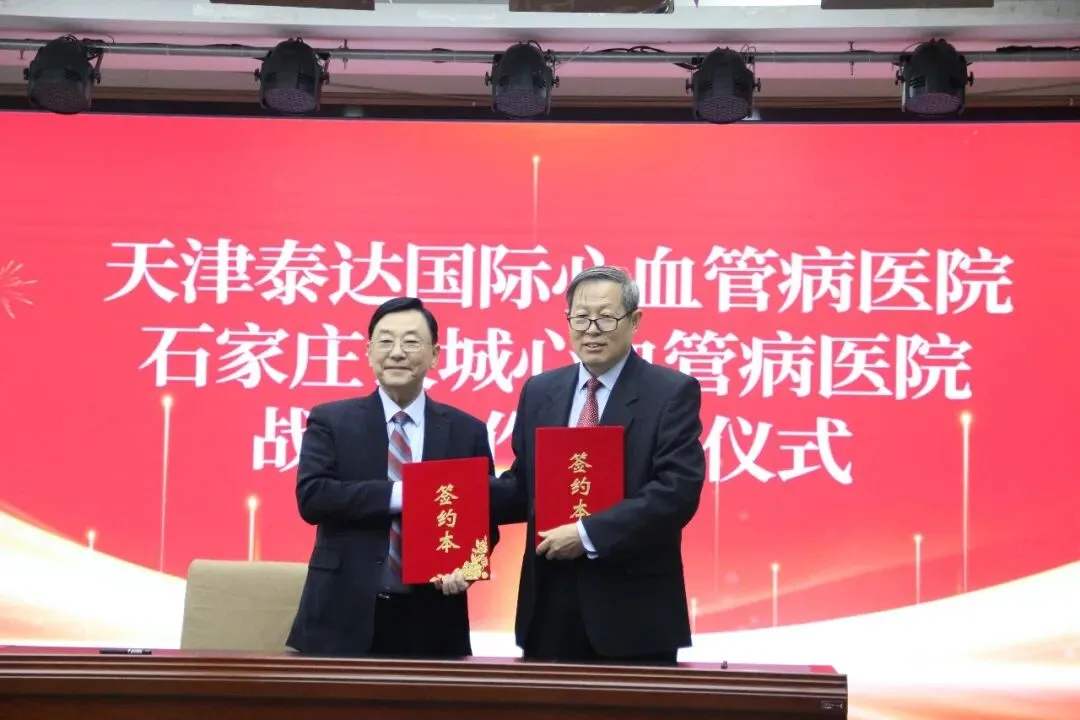 1 月 22 日,以“同心致远 共拓心程”为主题的天津泰达国际心血管病医院(简称:泰心医院)与石家庄长城心血管病医院(简称:长城医院)紧密型医联体签约暨揭牌仪式在石家庄顺利举行。仪式刚一落幕,依托医联体技术支撑,长城医院顺利完成河北省首例无体外循环支撑的微创人工心脏植入手术。