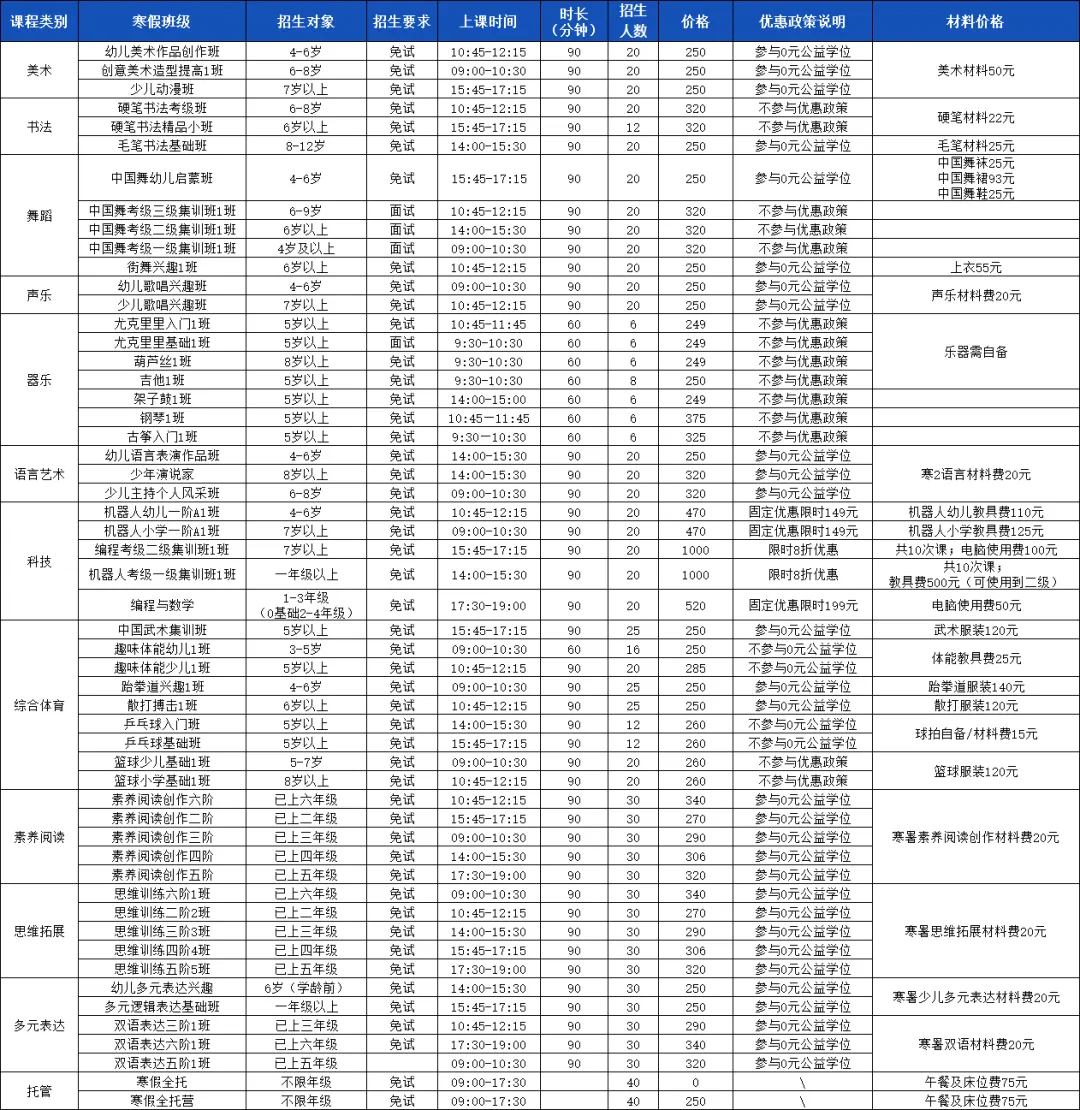 ③ 0 元惠民学位仅免除学费,材料费按课程表标注收取。