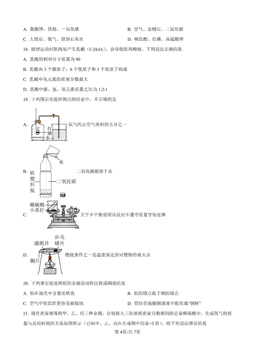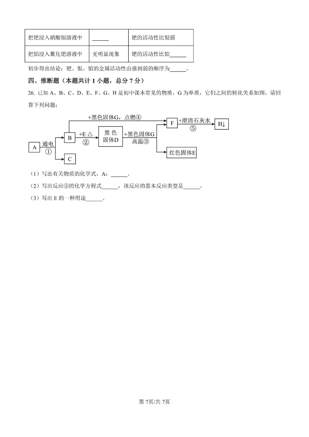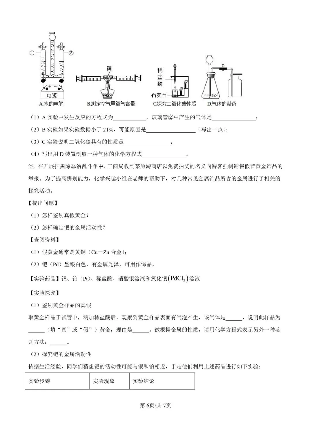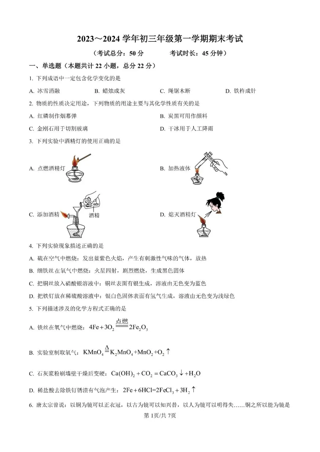 邯郸市第二十五中学九上期末【化学】卷-可打印(有答案)
