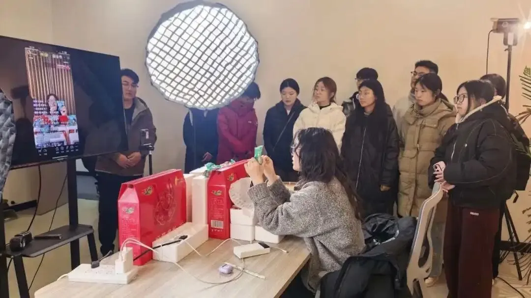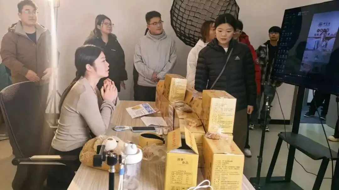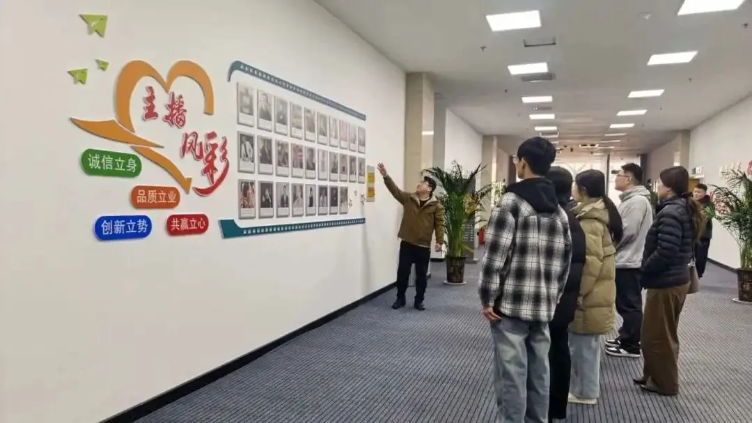 活动现场,工作人员带领大学生沉浸式参观直播间实景,详细介绍直播设备功能与操作技巧,生动讲解家乡特色产品的推广故事。同学们还近距离观摩了直播工作现场,感受“屏幕背后”的忙碌与专业。