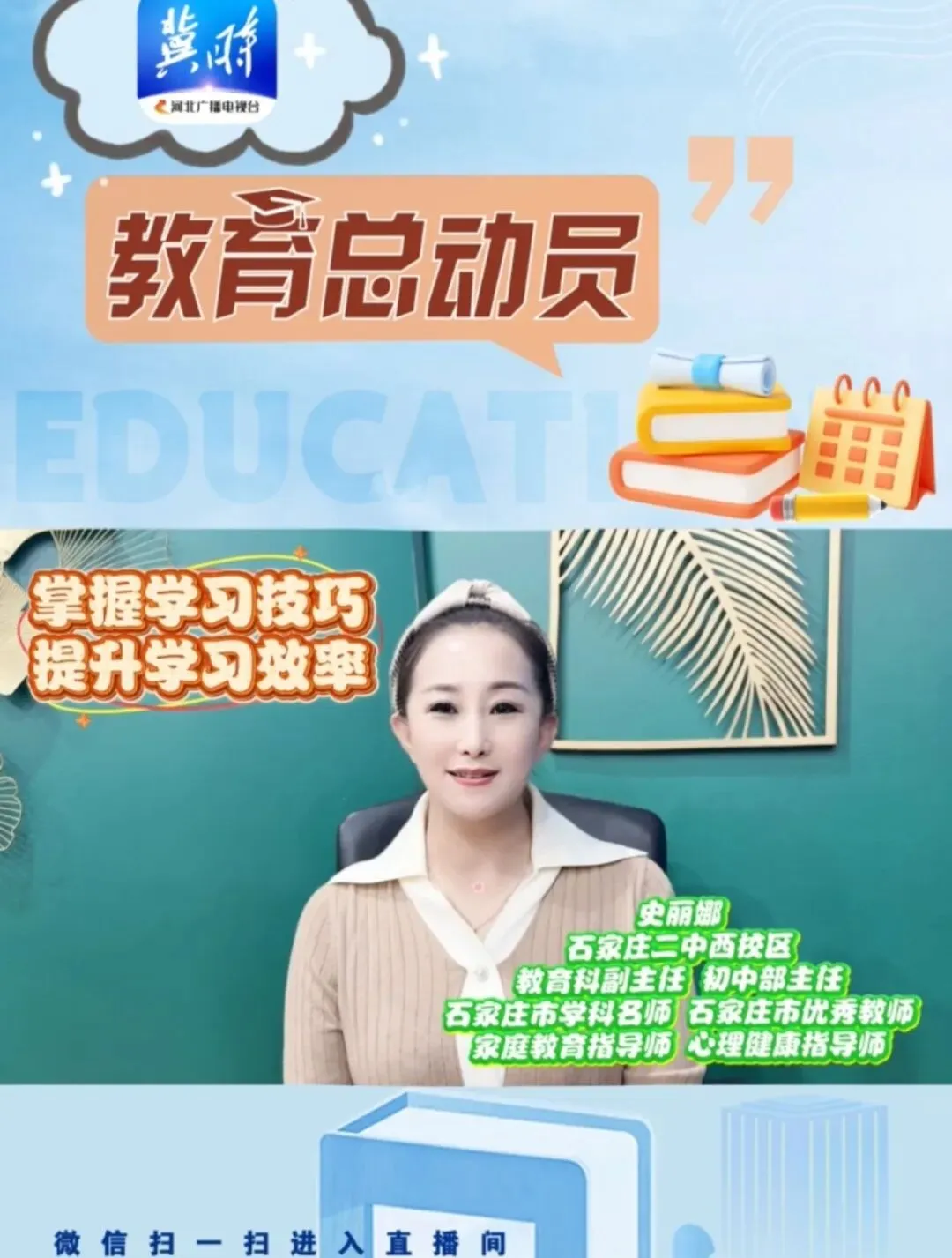 左图为史丽娜老师为河北省广播电视台“冀时”客户端“教育总动员”栏目做直播嘉宾