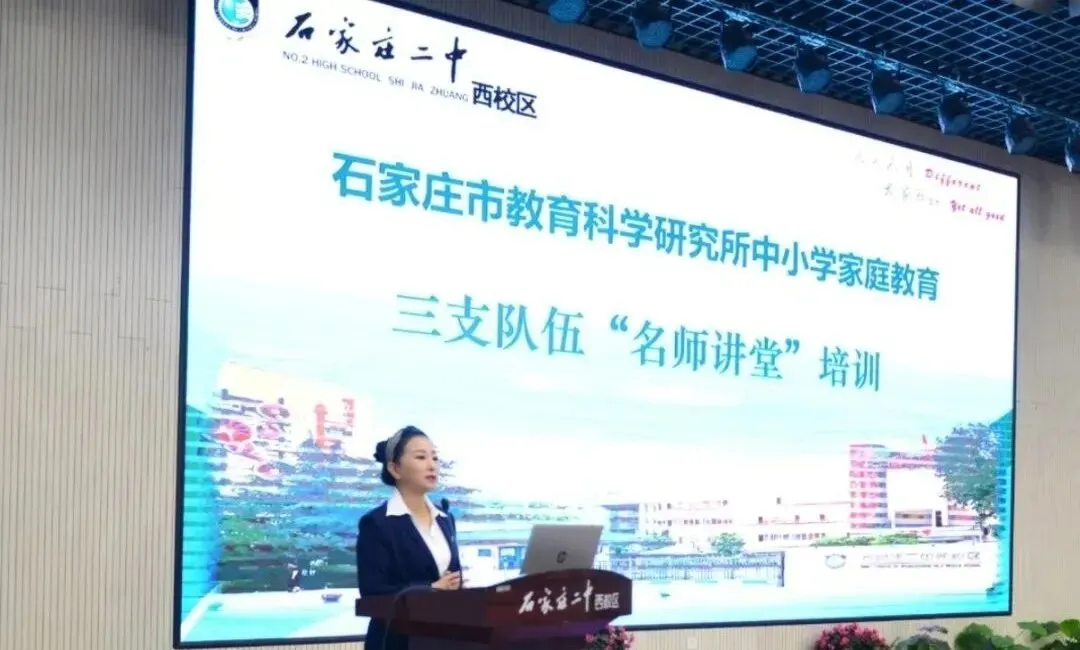 右下图为史丽娜老师为石家庄市“三支队伍”培训做讲座