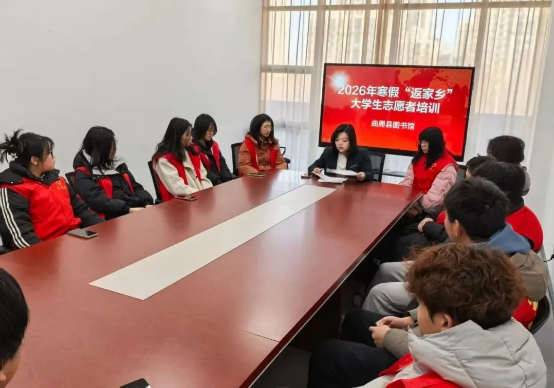 为充分发挥图书馆公共文化服务职能,为返乡大学生搭建实践平台,锻炼大学生实践能力和团队协作精神,同时提升志愿者服务质量,筑牢安全生产防线,为全县读者营造更加舒适、有序、安全的阅读环境。1月21日,曲周县图书馆团支部组织开展了2026年寒假“返家乡”大学生志愿者培训活动。