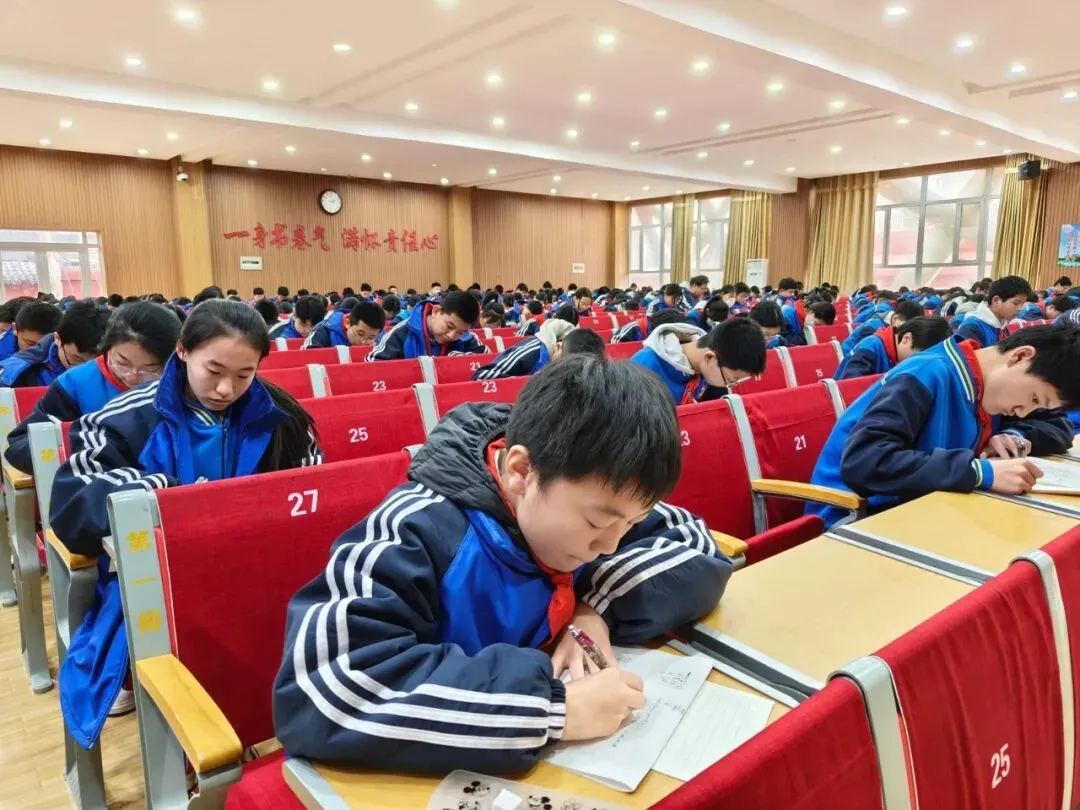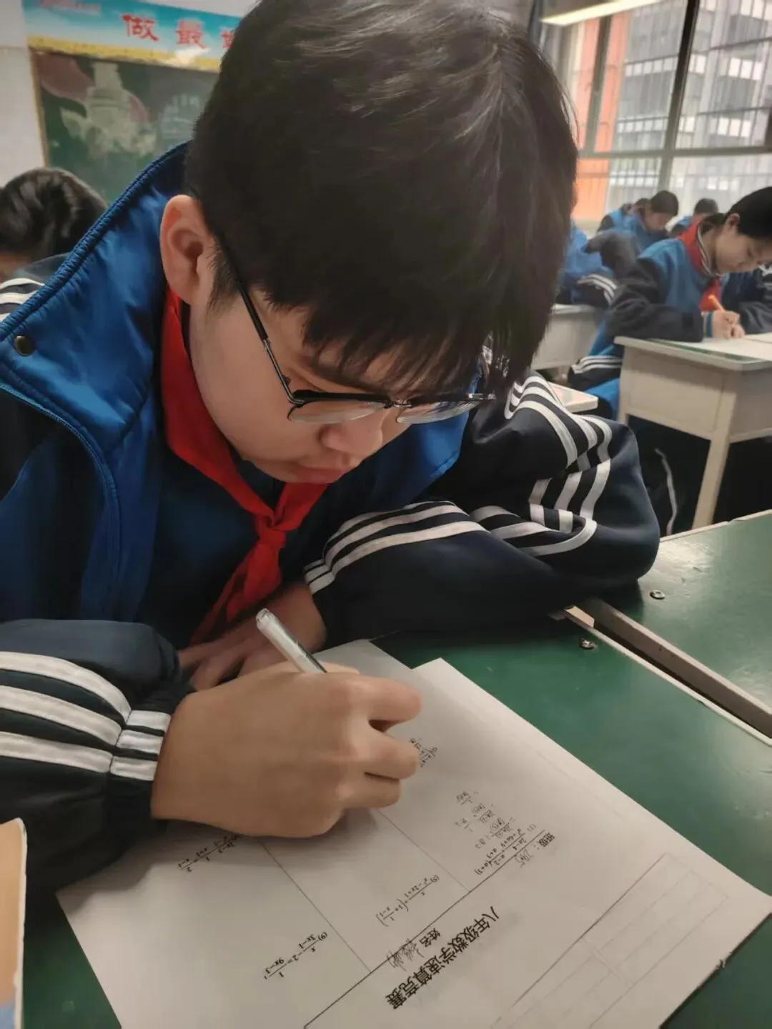 赛前,学校初二数学备课组精心筹备,命题既紧扣教材核心知识点,涵盖课堂基础内容,又融入逻辑思辨、一题多解等拓展题型,兼顾基础性与挑战性,全面考查学生的知识掌握度与思维灵活性。随着竞赛铃声响起,选手们迅速进入状态,或凝神思索、或奋笔疾书,草稿纸上密密麻麻的演算痕迹,见证着他们的严谨与专注。整个赛场秩序井然,唯有笔尖划过纸张的“沙沙”声,成为最动人的竞技旋律。