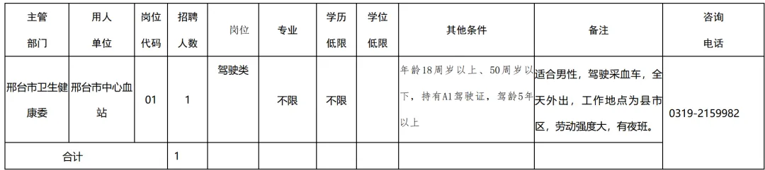 邢台市中心血站2025年度第二批公开招聘1名编外工作人员公告