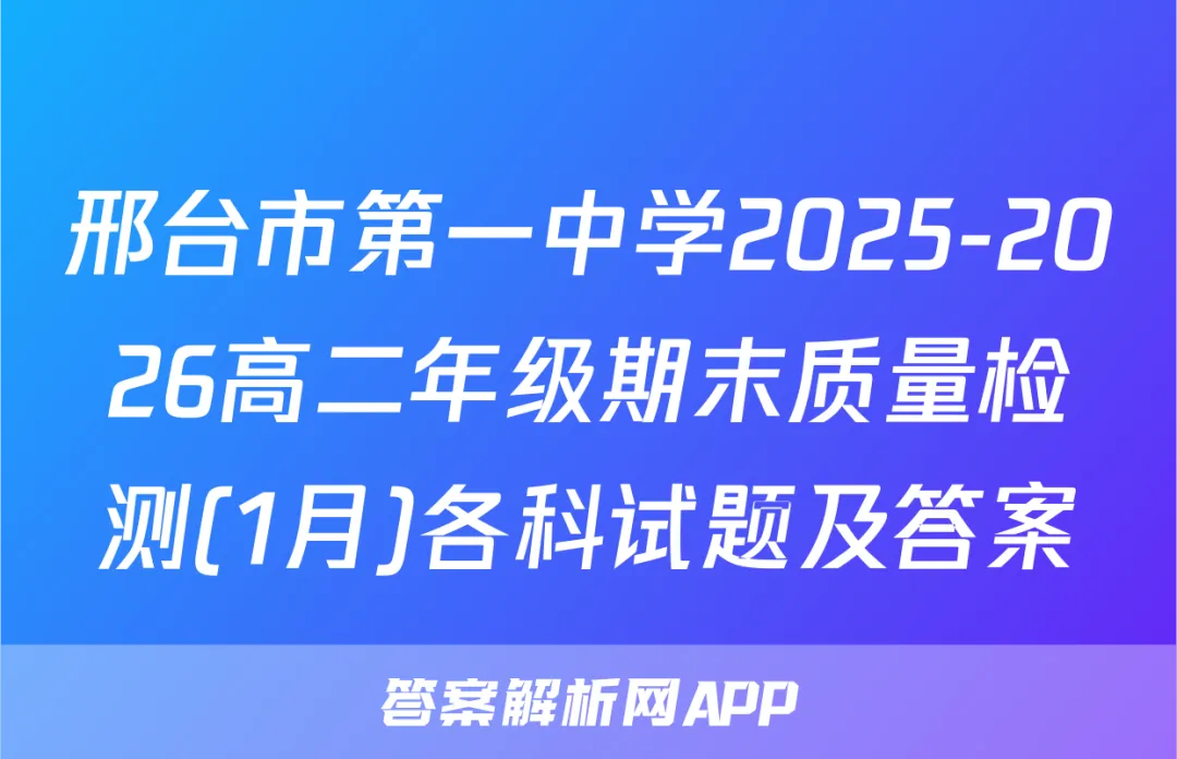 邢台市第一中学2025-2026高二年级期末质量检测(1月)各科试题及答案,答案解析网已经更新了邢台市第一中学2025-2026高二年级期末质量检测(1月)各科试题及答案