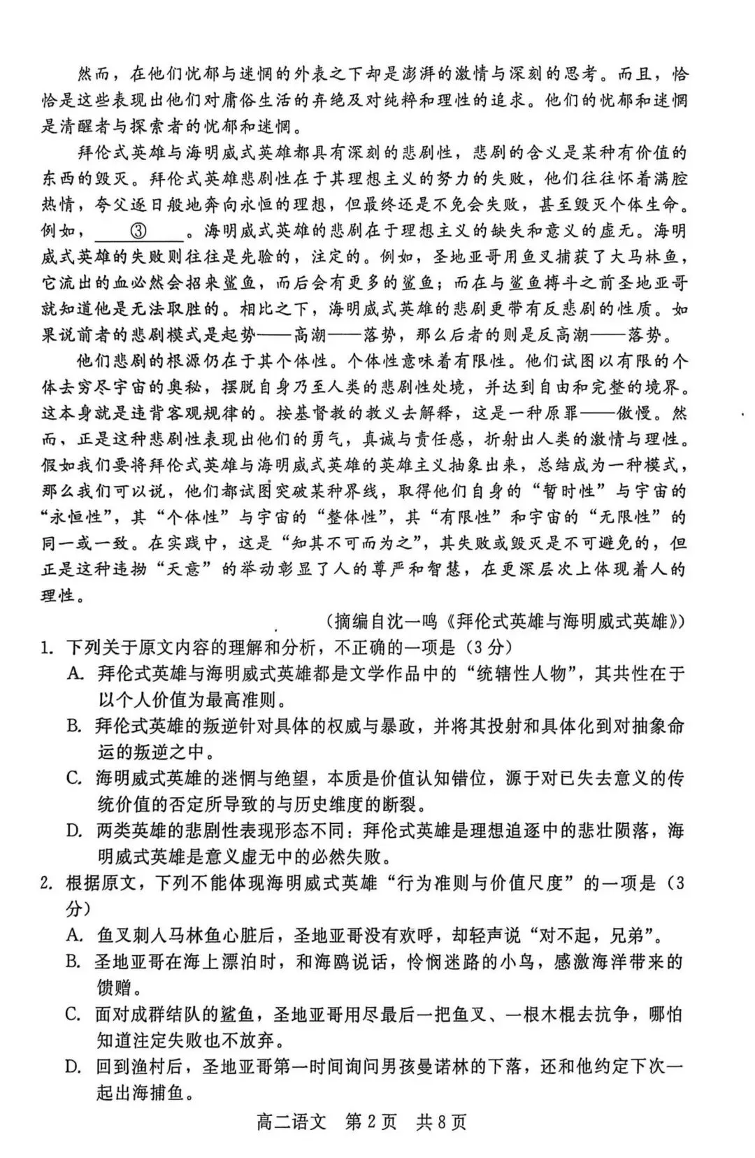 邢台市第一中学2025-2026高二年级期末质量检测(1月)语文试题