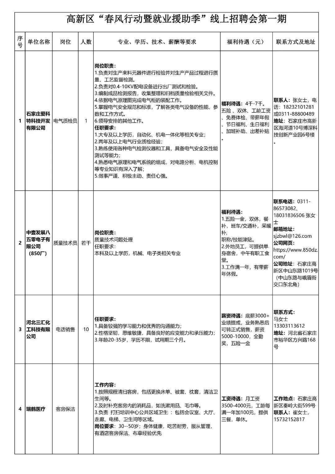 石家庄高新区开展“春风行动暨就业援助季”线上招聘会(第一期)