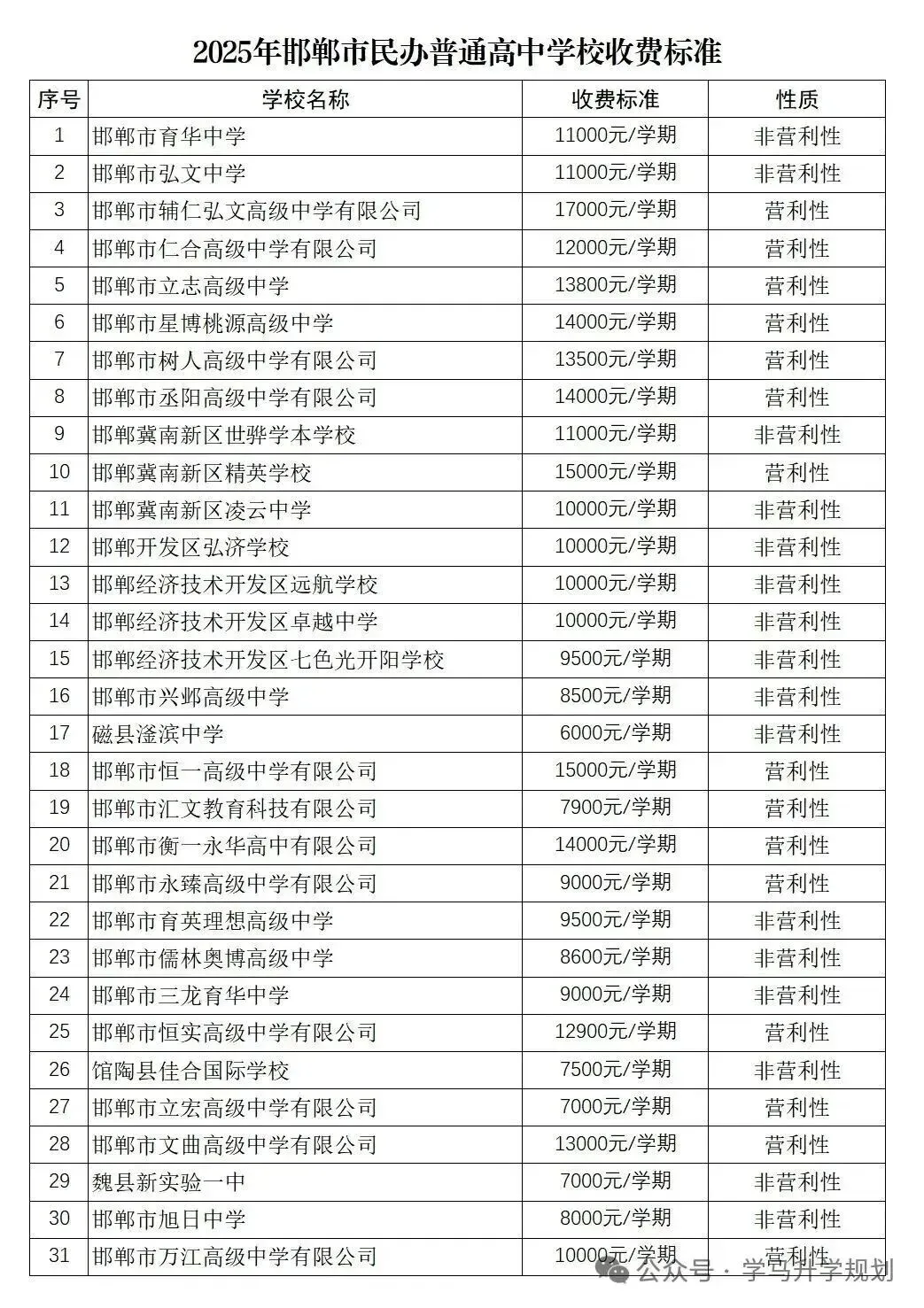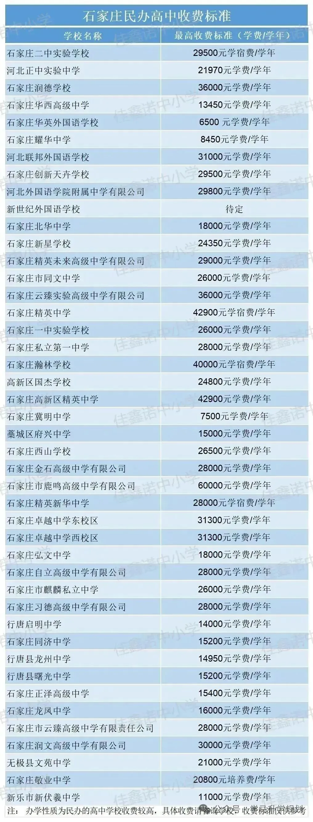 >2025年石家庄,邯郸,秦皇岛各民办学校学费,住宿标准【建议收藏】