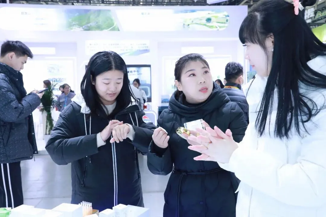 在璀璨灯光下,集团翰林生物科技的美容产品吸引了众多年轻女性的目光。她们有的仔细聆听专业顾问的讲解,有的迫不及待地试用最新推出的产品,脸上洋溢着兴奋与期待。“感觉确实不错、挺好用。”非常舒服、滋润,还不油腻!”一位年轻女士兴奋地分享着自己的体验。人们纷纷询问,“哪里能买到你家的产品?”“线上有优惠吗?”现场气氛非常火爆。