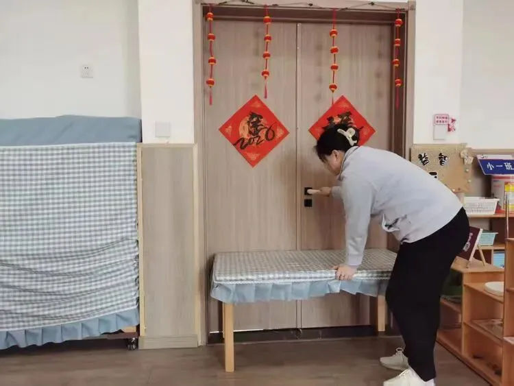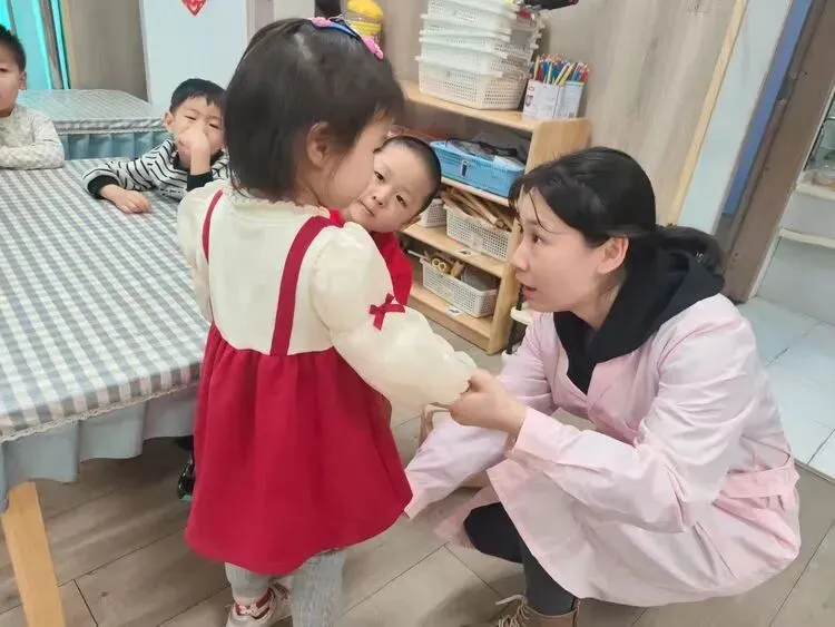 险情结束后,保健医去到各班巡查有无受伤幼儿并进行安抚,帮助幼儿平复心情。
