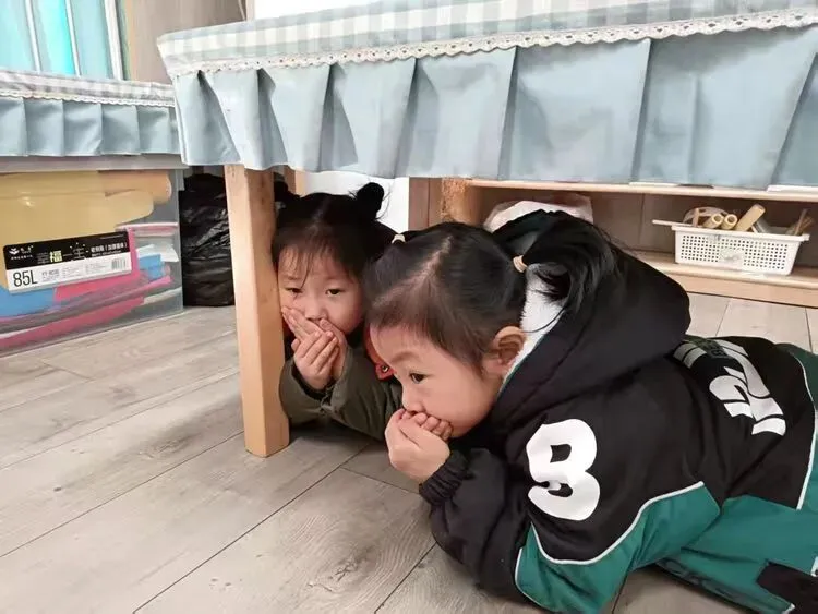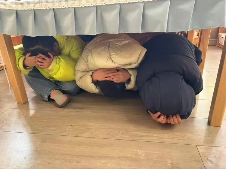 警报声响起后,各班教师立即组织幼儿沿预定路线快速转移至安全区域,关闭门窗并利用室内隐蔽空间躲避,全过程做到快速有序、不慌不乱。