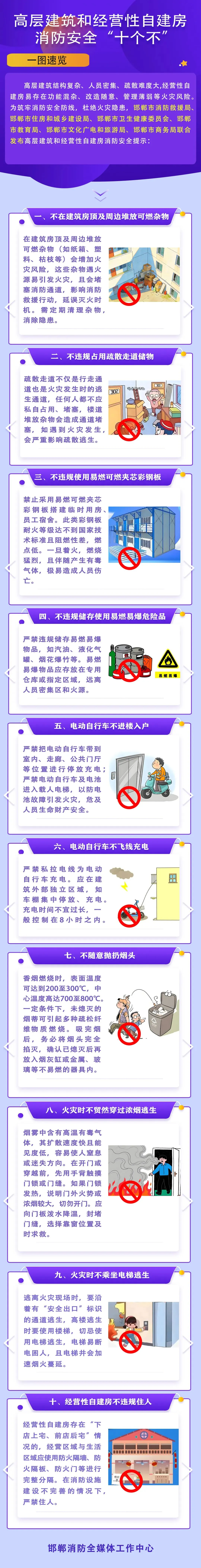 高层建筑鳞次栉比,早已成为城市天际线的重要组成部分,但随之而来的消防安全隐患也时刻牵动着大家的心。邯郸市消防救援局、邯郸市住房和城乡建设局、 邯郸市卫生健康委员会、邯郸市教育局、邯郸市文化广电和旅游局、邯郸市商务局联合发高层建筑和经营性自建房消防安全提示。